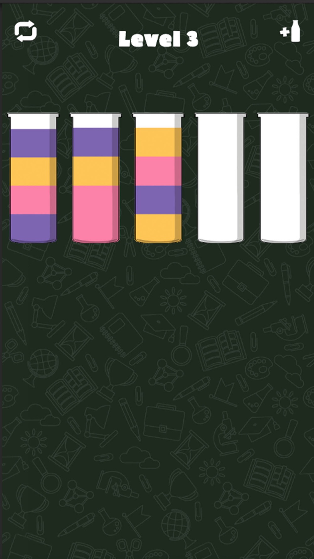 尝试将其分类并将有色水倒入瓶中,直到所有颜色都在同一瓶中。 一个轻松而富有挑战性的游戏,可以训练您的大脑。
