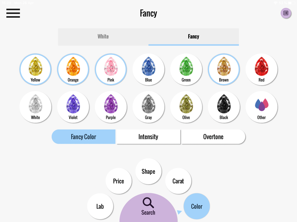•Standard colors & natural fancy-colors