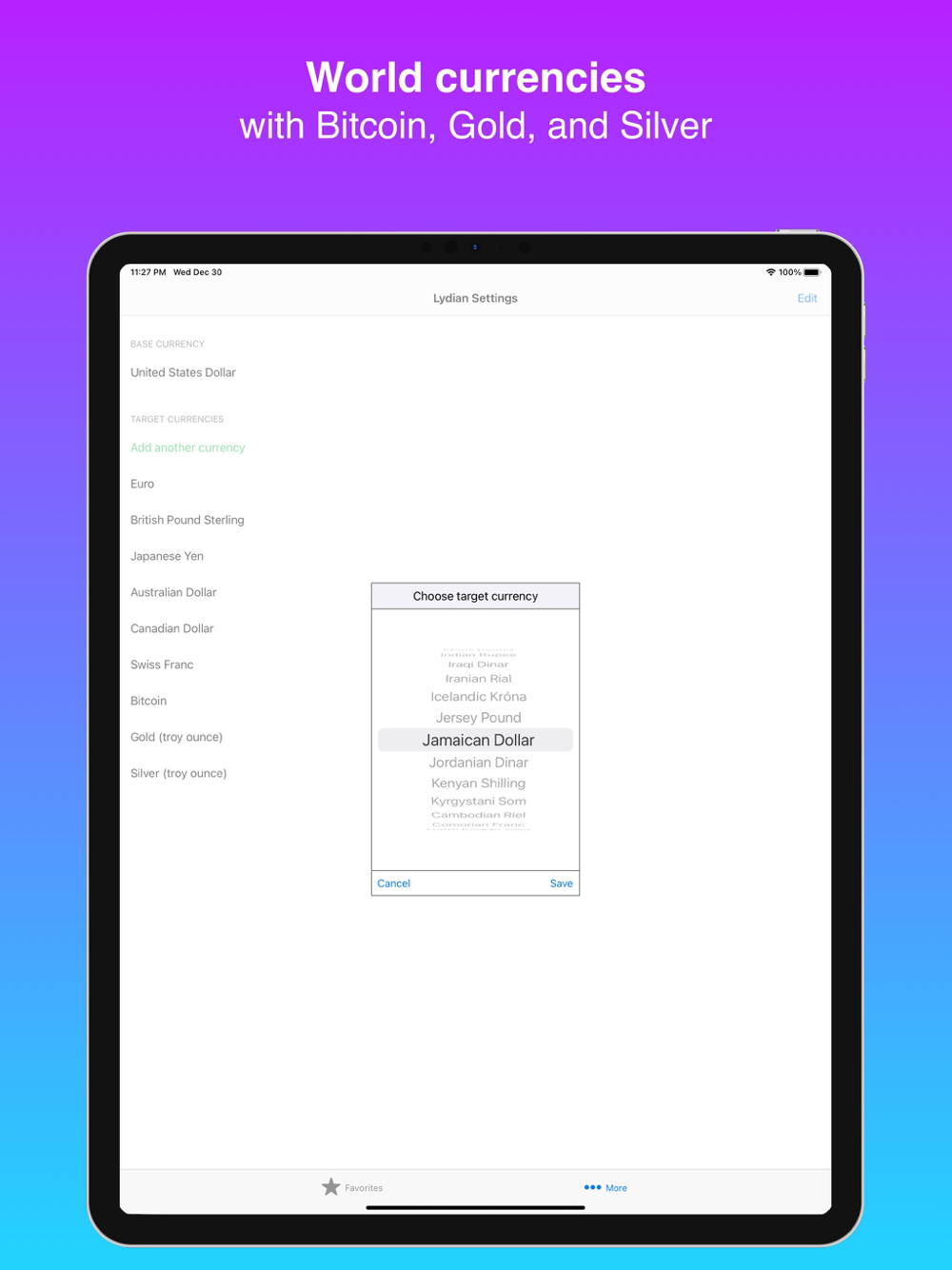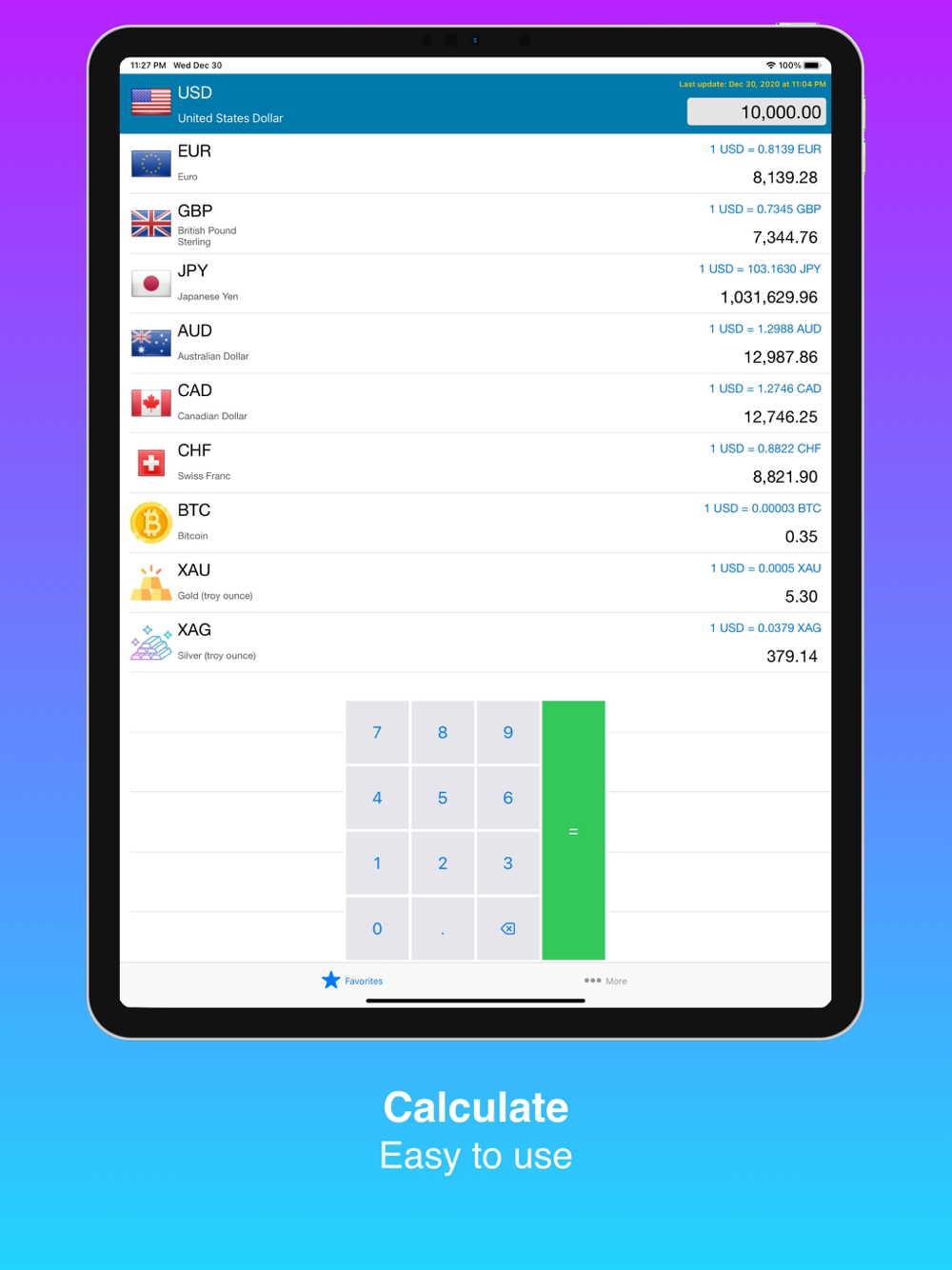 No ads, and super light (~1 MB!) Lydian is a currency and foreign exchange converter & calculator that supports world currencies, Bitcoin, and some valuable materials.