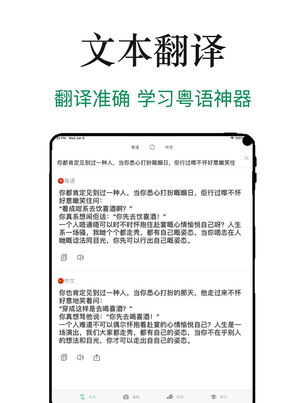 高效准确的中文与粤语互译。支持对翻译结果进行朗读。
