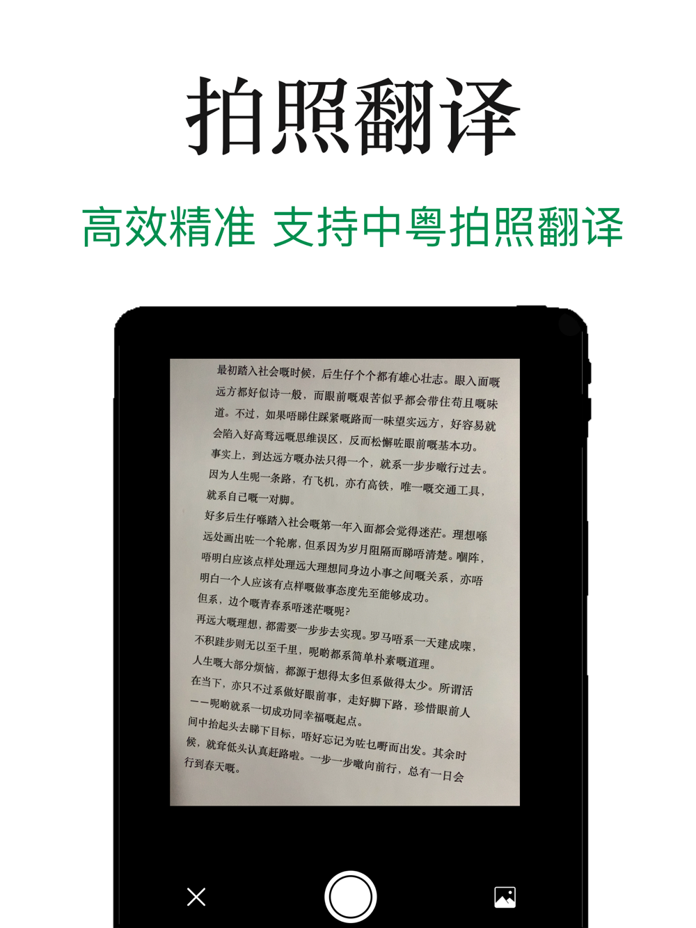 所见的中文或粤语图片,支持拍照与相册选择,把选中图片通过AI技术高精度的ocr文本识别转为文字,能准确的转为目标语种。