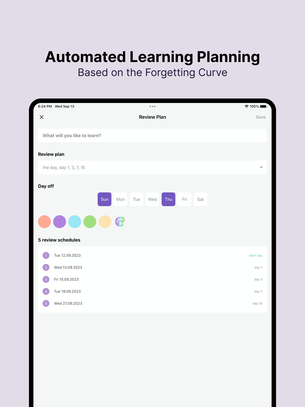 To overcome forgetting, reviewing is essential. Using the reminder planner, you can easily and quickly create a review plan for long-term memory.