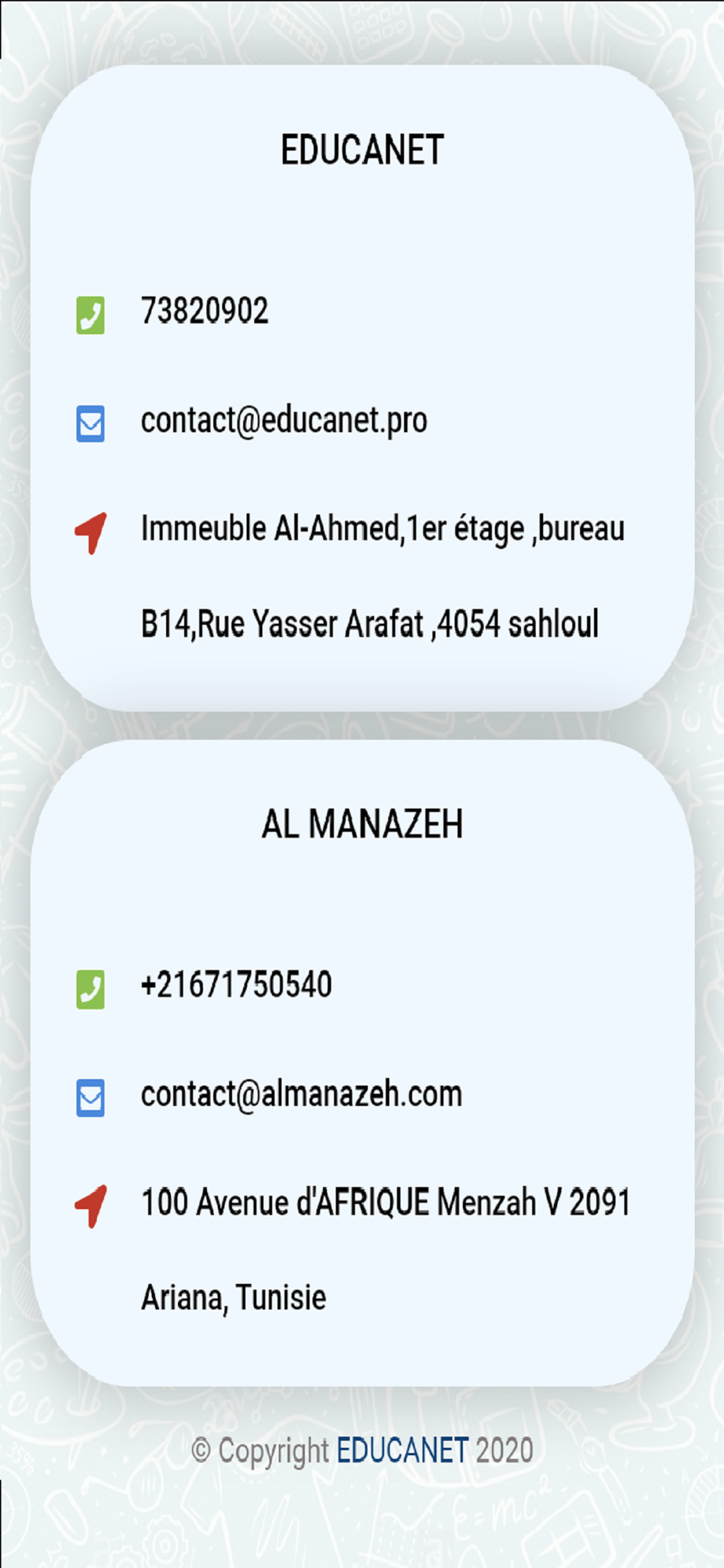 L'application Al Manazeh mobile permet au parent d'être à côté de son enfant: suivre les activités pédagogiques, recevoir des conseils du cadre de l'école, être à jour pour les évènements culturels et sportifs. Contacter l'administration de l'école, recevoir les bulletins des notes, ....Al Manazeh Mobile c'est être informé là où vous êtes... Cher parent télécharger Al Manazeh Mobile et entrer votre identifiant et mot de passe disponible par sms ou à l'administration de l'école.