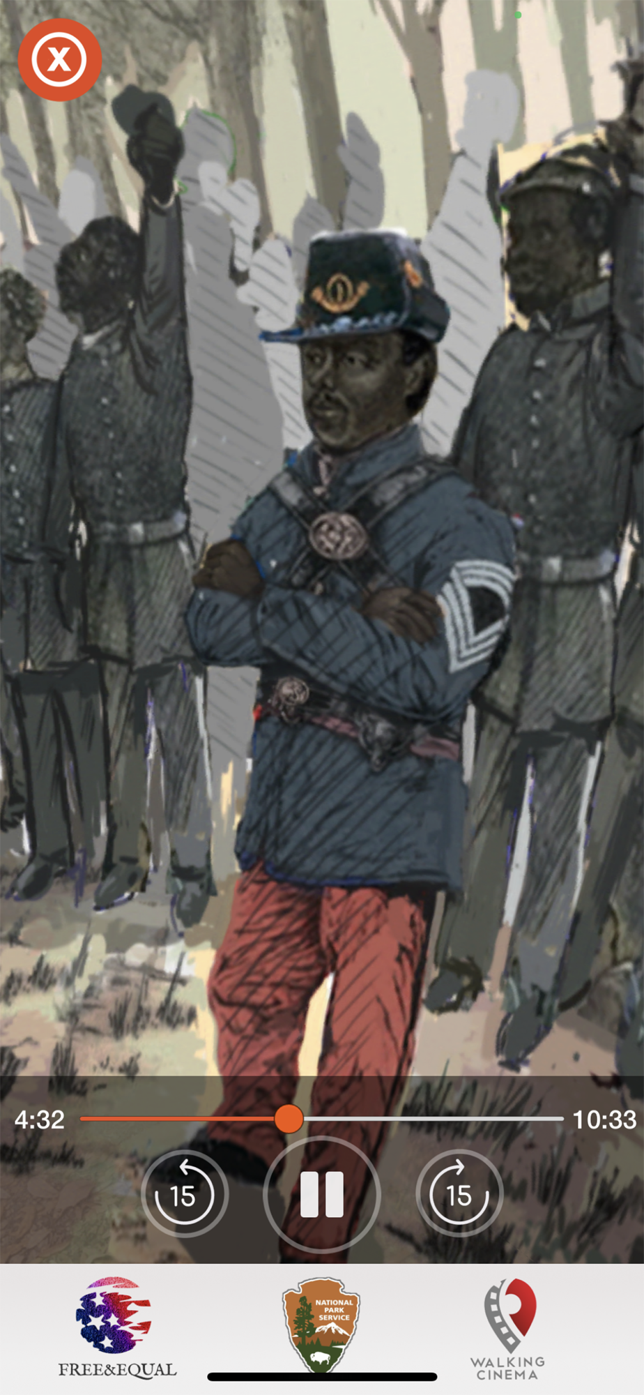 Free & Equal (F&E) is an audio and augmented reality journey exploring a key moment in the history of Civil Rights. Using GPS, the app guides you from site-to-site through the National Reconstruction Era Historical Park in Beaufort, South Carolina. This area was home to the Port Royal Experiment, in which 8000 formerly enslaved people were armed, funded, trained, and empowered to build their own society 3 years before the end of the Civil War. This story reveals a small, often-forgotten moment in American history in which recently-freed-people owned their former plantations, literacy was spreading like wildfire, the Freedman’s bank was open to all, formerly enslaved people were elected to US Congress, and military power was firmly in the hands of African Americans.