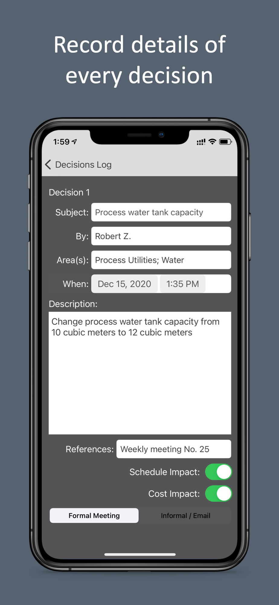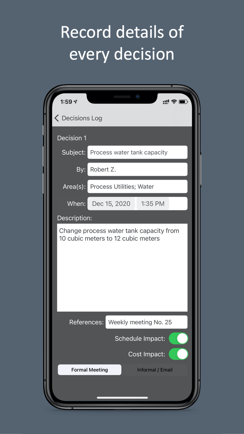 Get your project in order with Decisions. Create records of project decisions that will help you manage change, communicate directions and protect your organization.