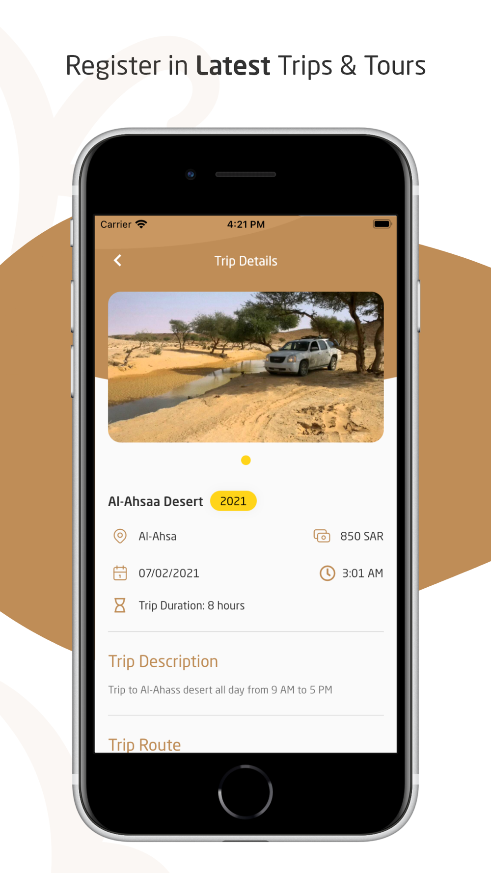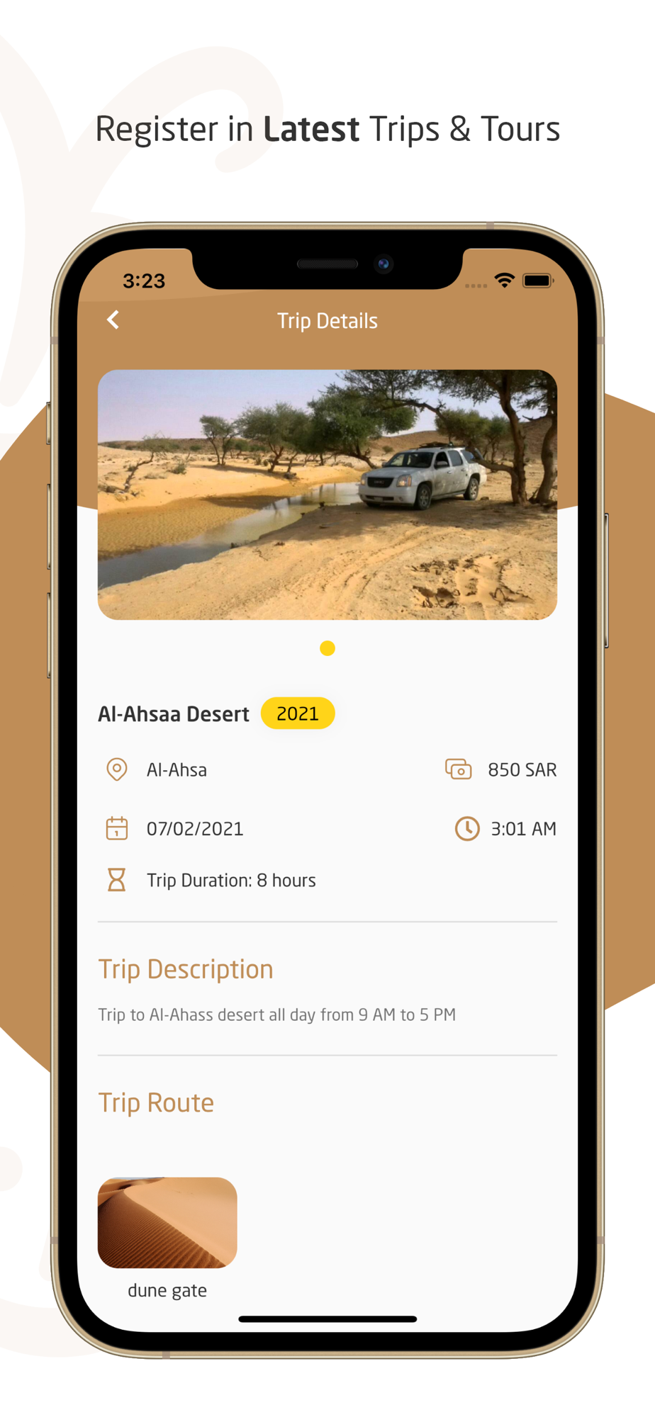 Kashta is an app aimed to organize desert trips in Saudi Arabia