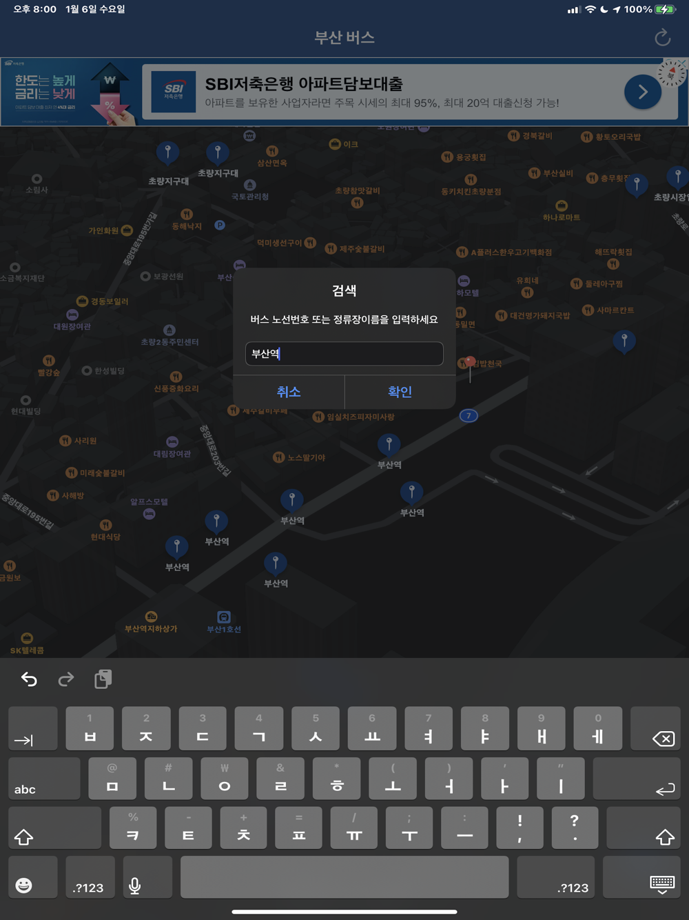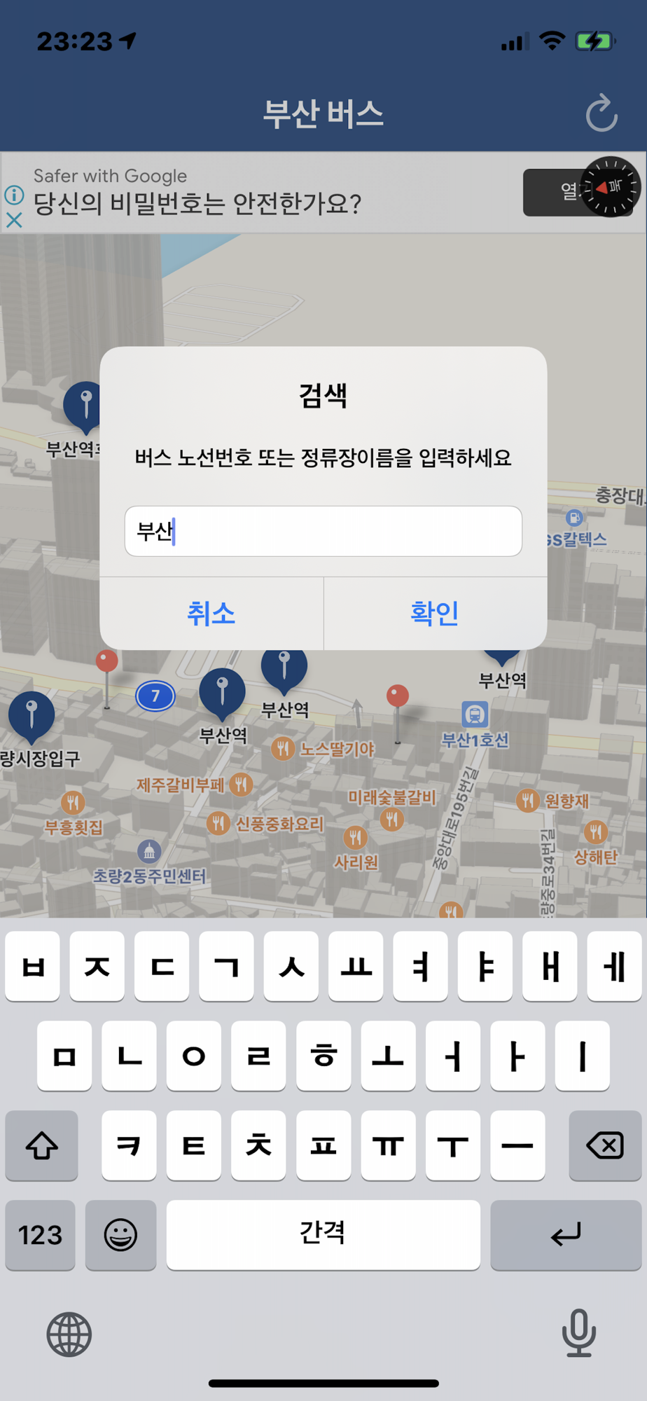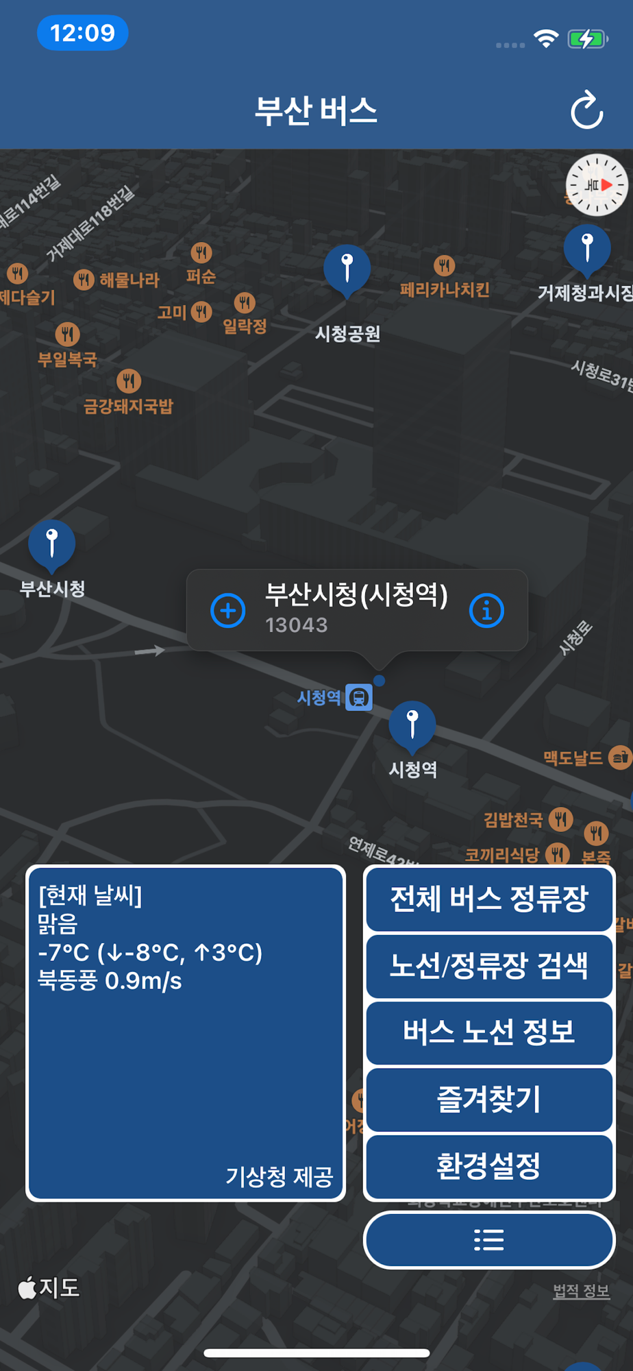 본 애플리케이션은 애플 지도를 기반으로 부산 버스 정보를 제공합니다.