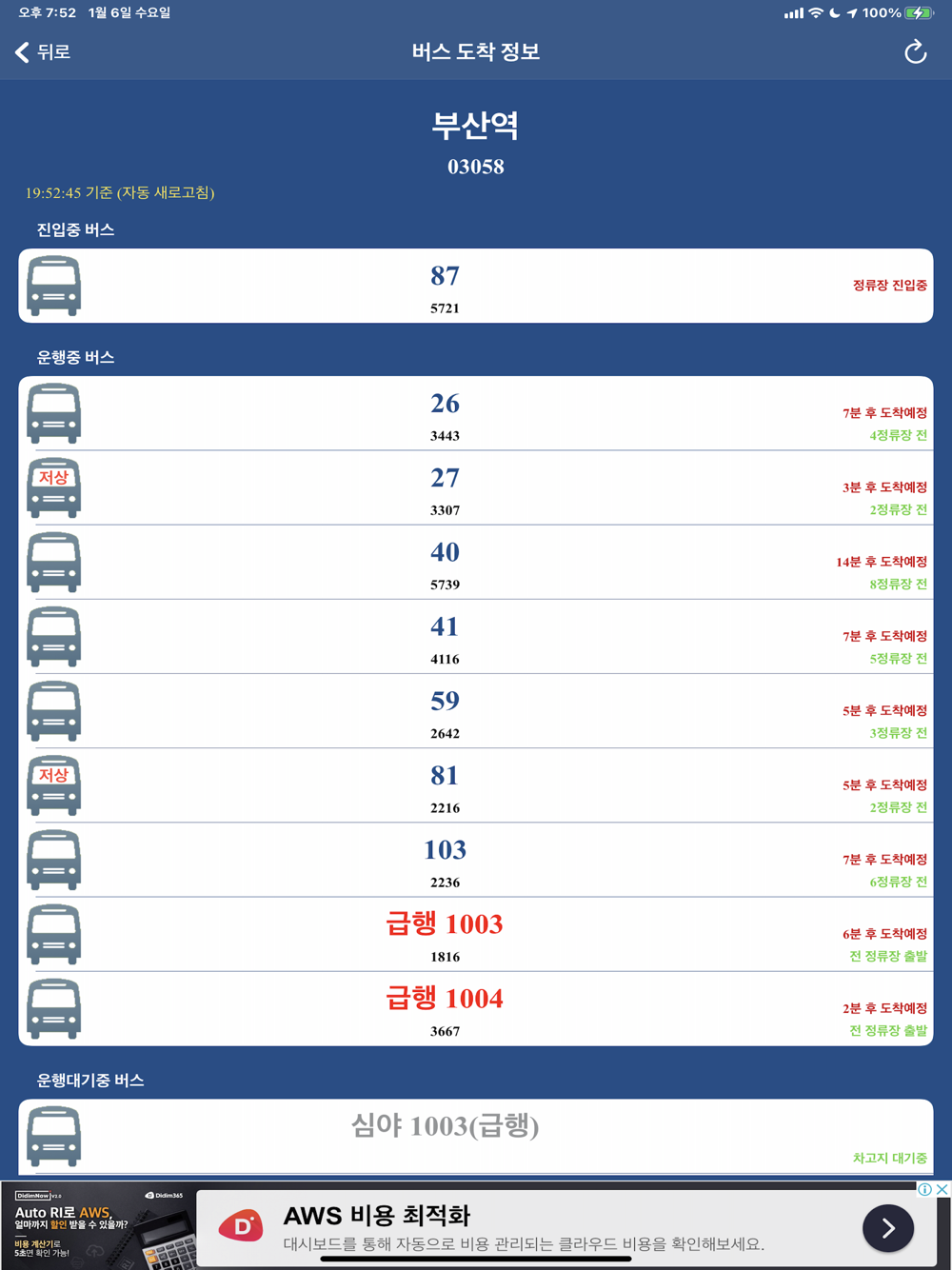 일정 주기로 버스 도착 정보를 자동 갱신합니다.
