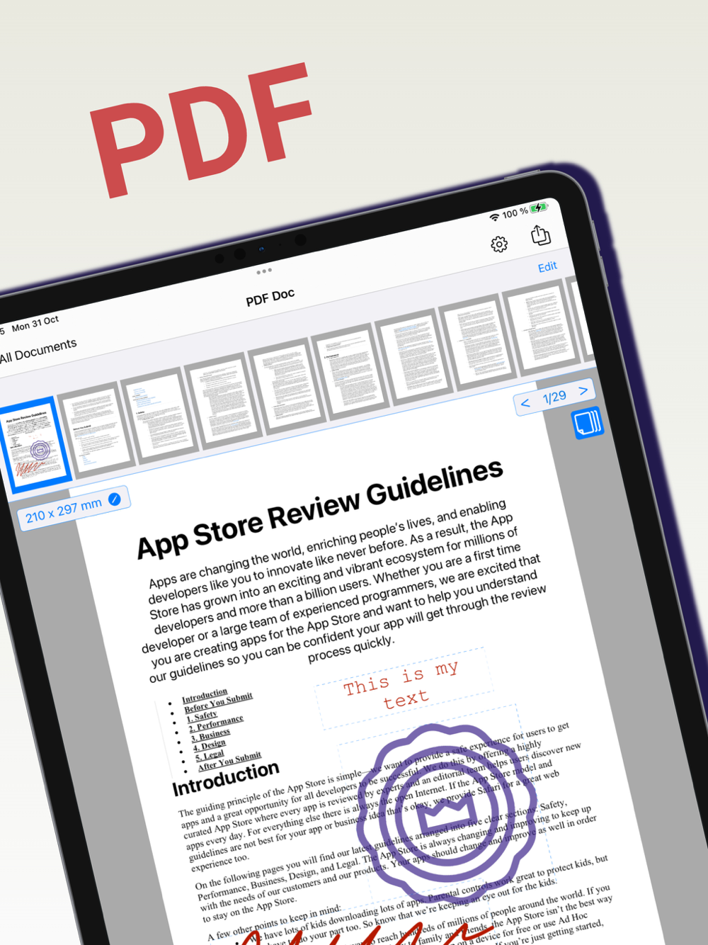 + Open and edit multi-page PDF files by adding signatures, stamps, or images