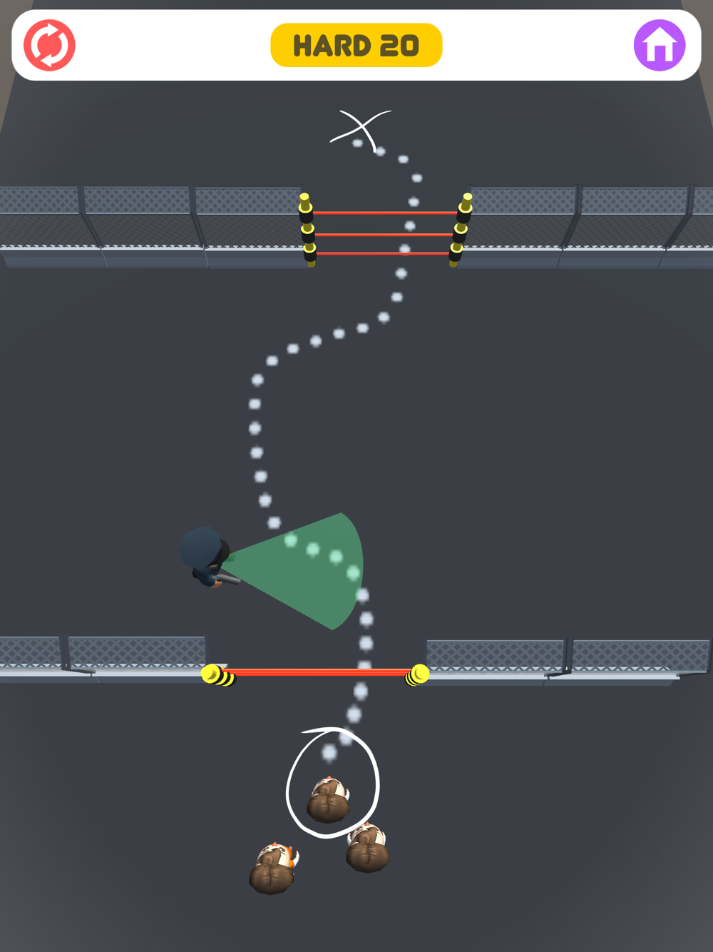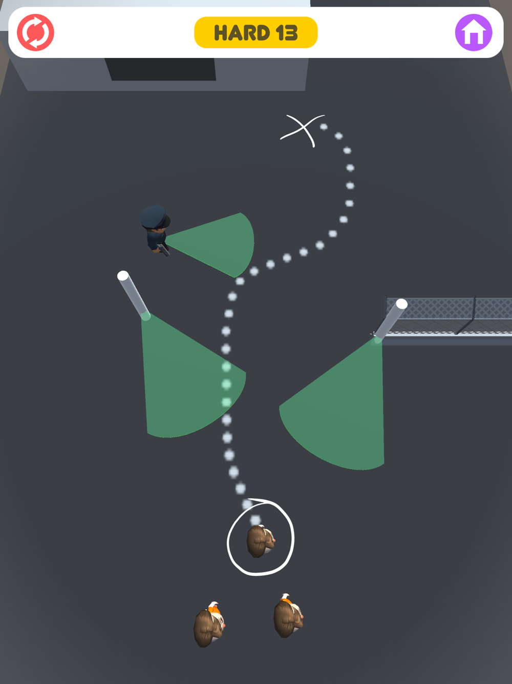- In hard mode, you must get all three criminals to the checkmark without getting caught.