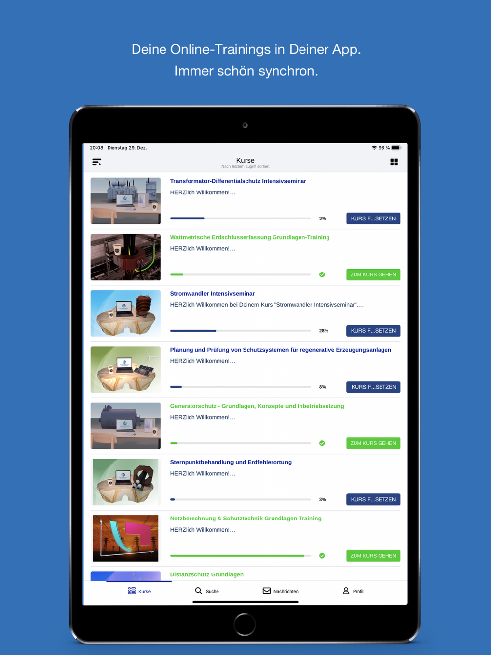 - Absolviere Abschlusstests in der App um Deine Zertifikate zu erhalten