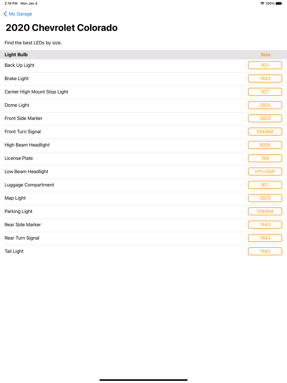 All platform LED headlight bulb size guide and database, signal bulb for over 40 000 vehicles from 1962 to 2020. It's pretty easy to find and compare all bulb size information with the Year/Make/Model information of the vehicle.