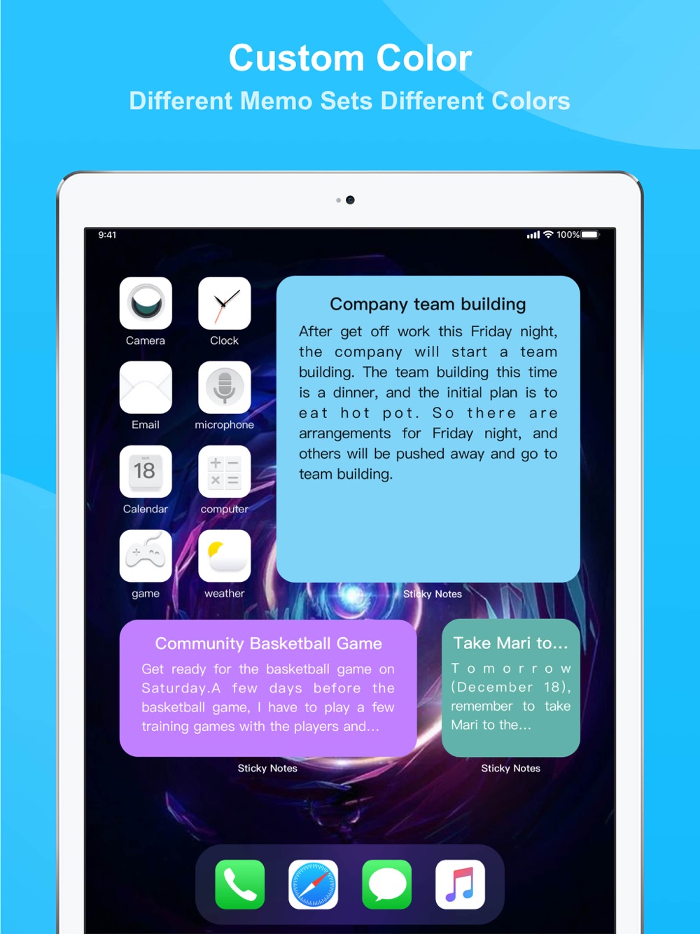- Customizable color, you can freely choose the background color, set different colors according to different memos