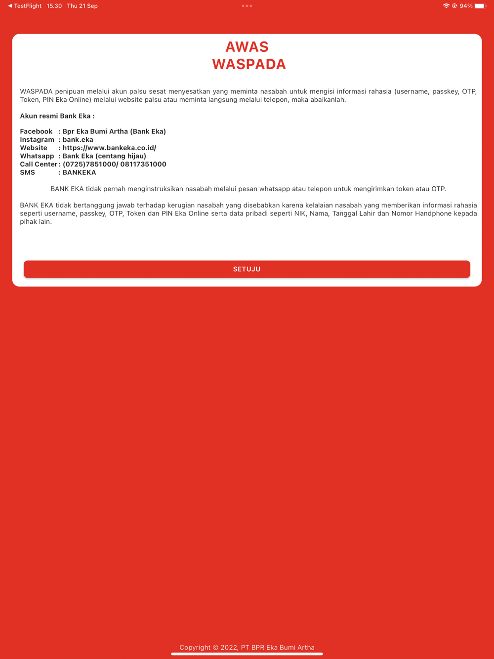 Untuk informasi lebih lanjut, silakan menghubungi Bank Eka melalui Call Center 0725 7851000 dan 0811 7351000 atau email ke [email protected].