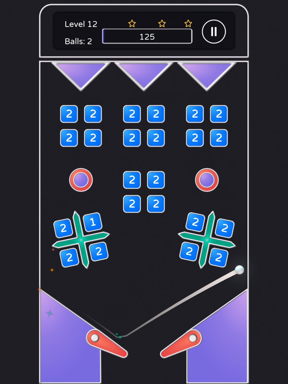 • Use the left and right flippers to shoot the ball and break all the blocks to complete each level.