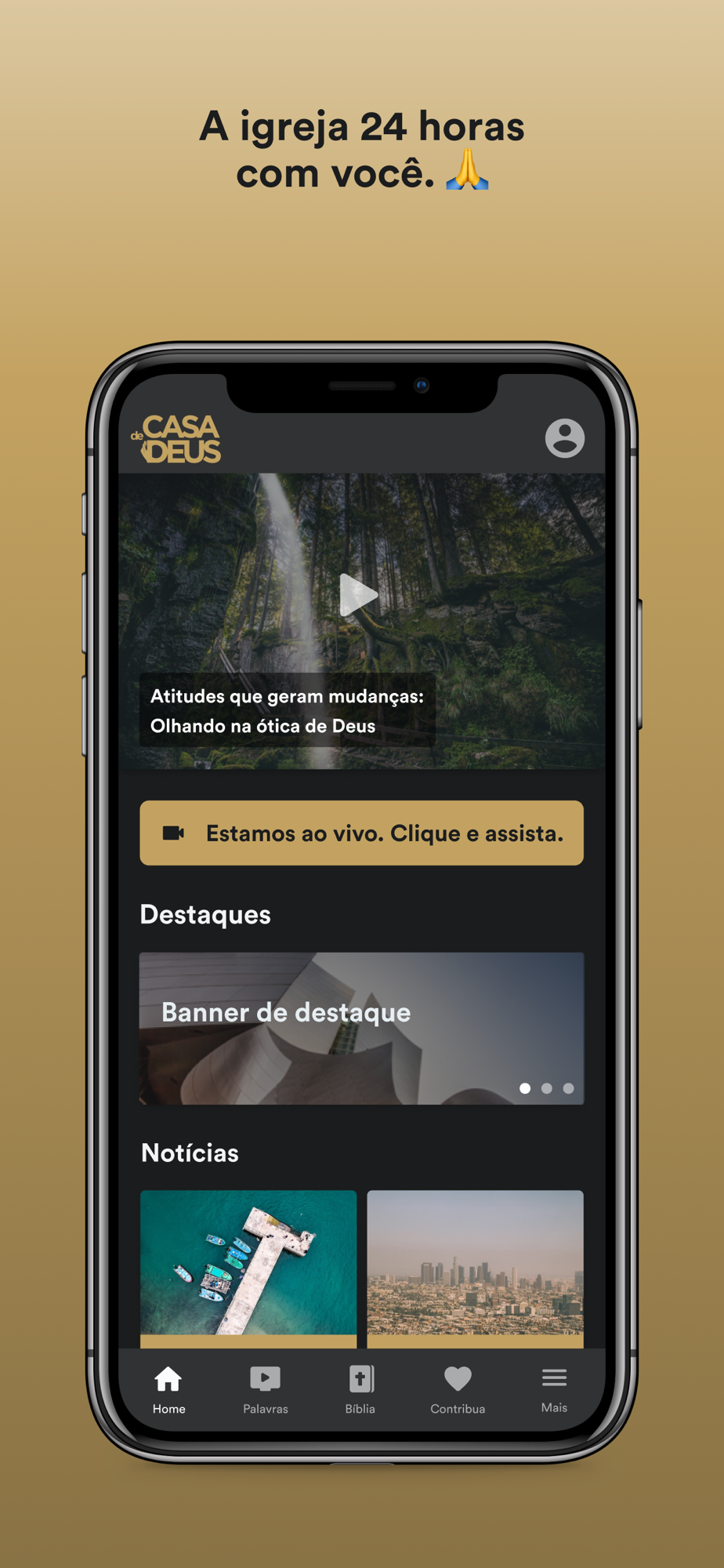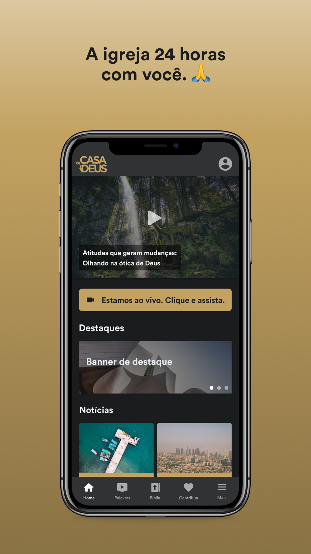 - Conecte-se com a igreja através dos grupos de interesse, receba conteúdo direcionado e obtenha sua carteirinha exclusiva.