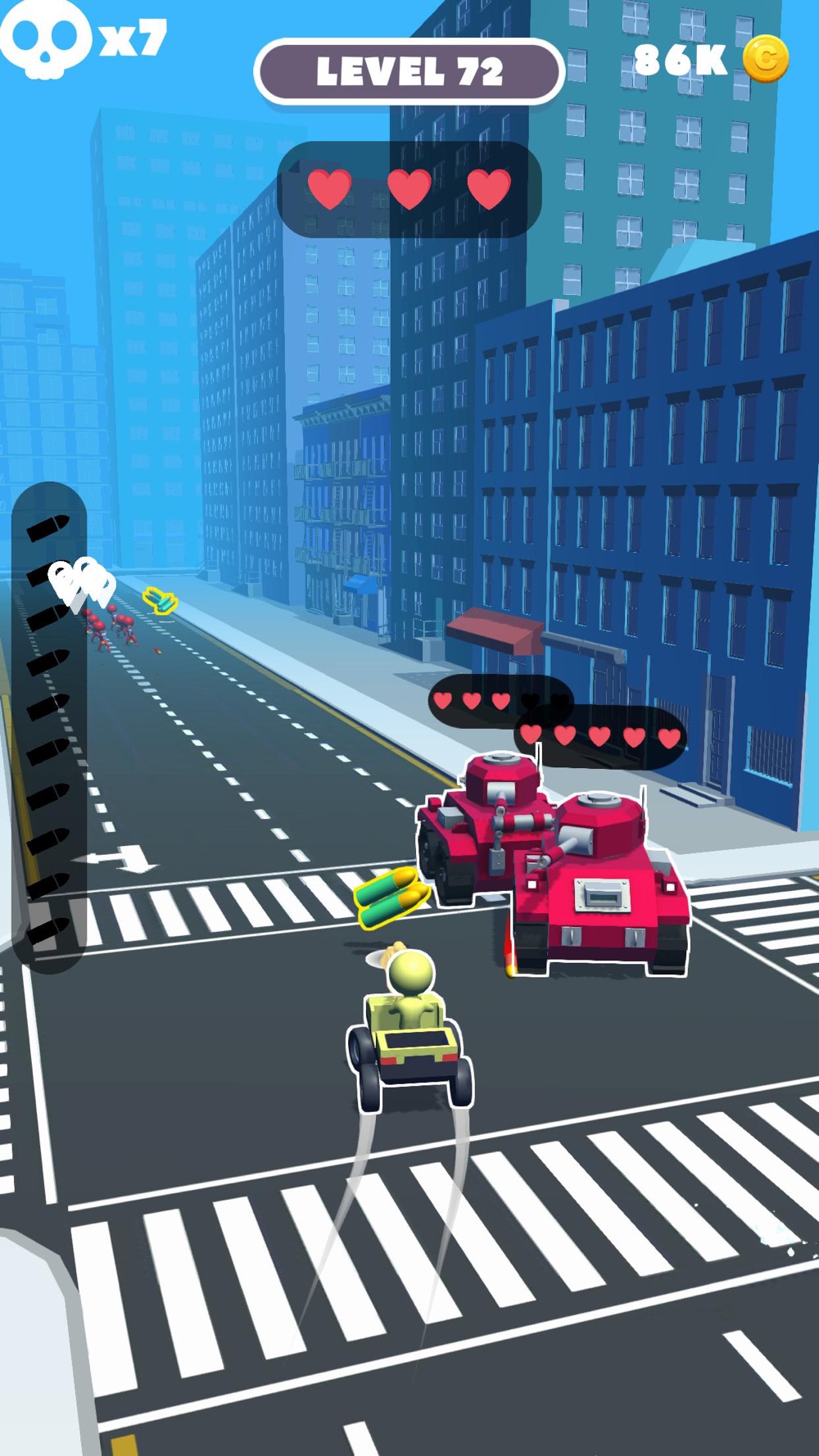 Control the car and the aiming with the joystick, release the touch to change the mode