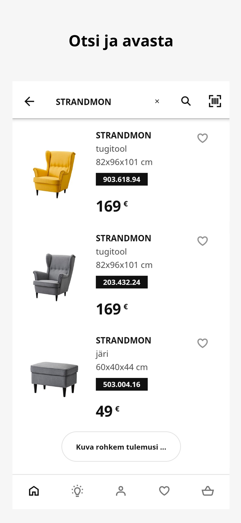 Meie lihtsa otsingufunktsiooniga leiad vajalikud asjad kiirelt üles. Uudista IKEA tootevalikut, vaata hindu, avasta uusi tooteid ning leia kõik, mida vajad, et oma kodu paremaks muuta.