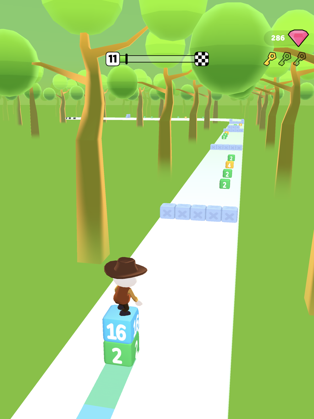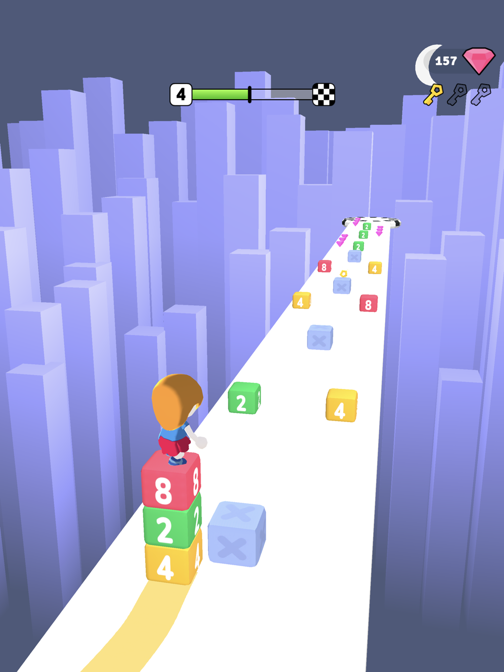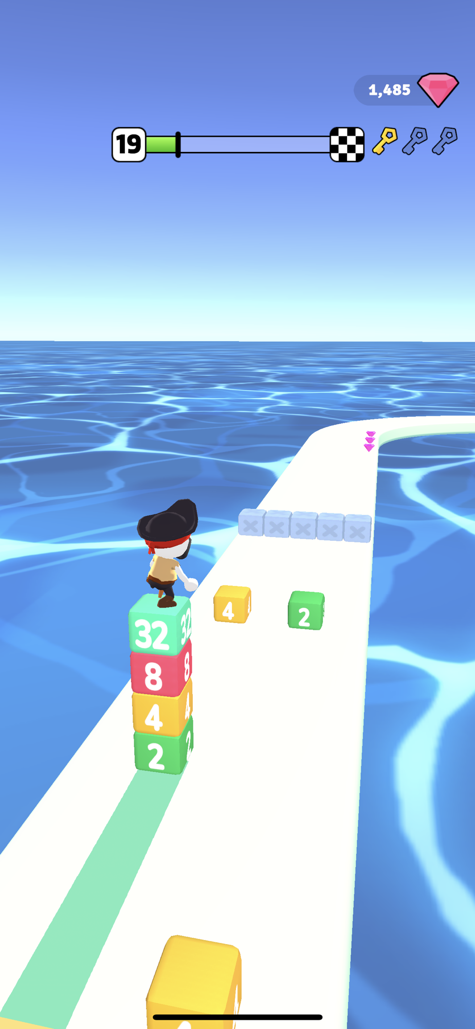 Stack and merge cubes, but avoid obstacles.