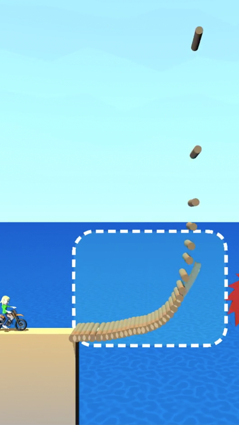 Draw jumps and bridges. Then race your bike through the obstacle course to the goal.