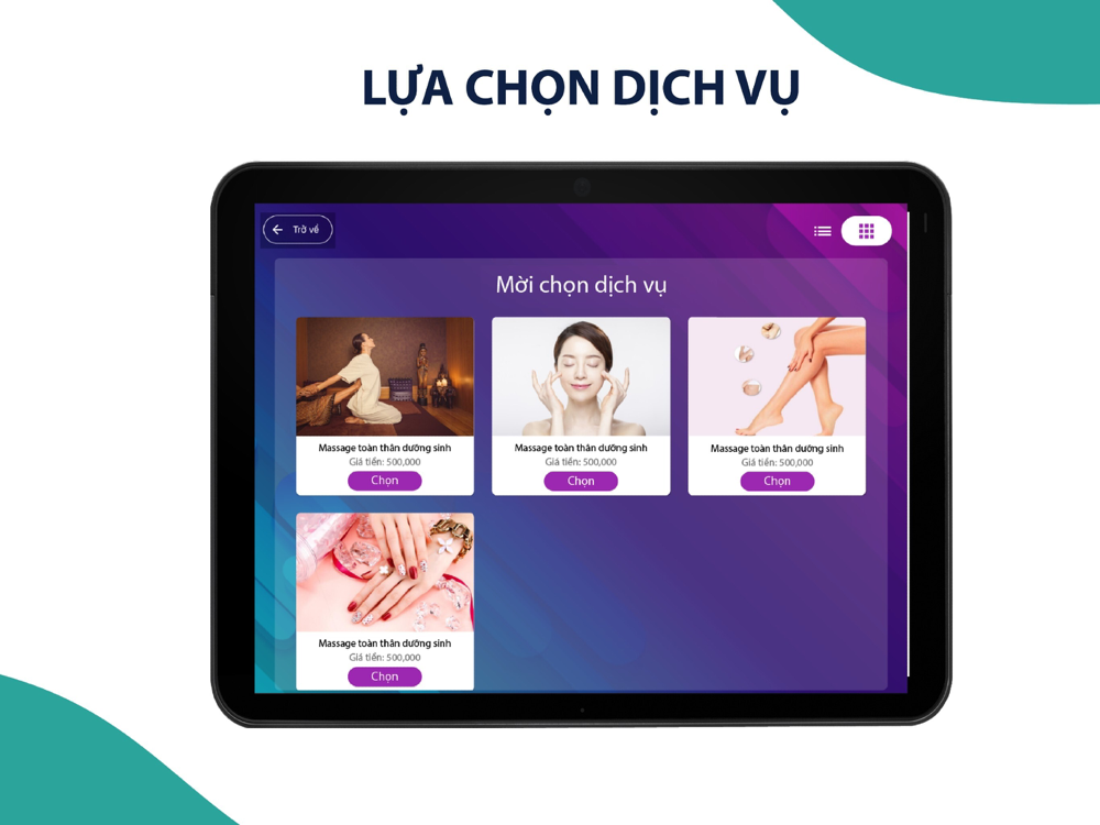 - Khách hàng đến cửa hàng chọn lựa dịch vụ, hình ảnh kỹ thuật viên ngay trên IPAD máy tính bảng