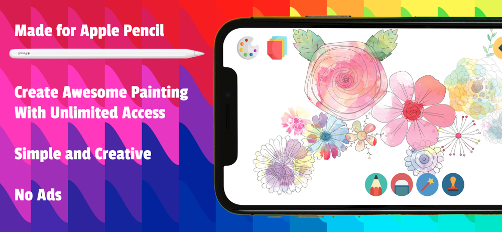 - Apple Pencil support: enjoy an easy and intuitive process of coloring on the crisp screen of iPad Pro also 3D touch for pressure-sensitive painting