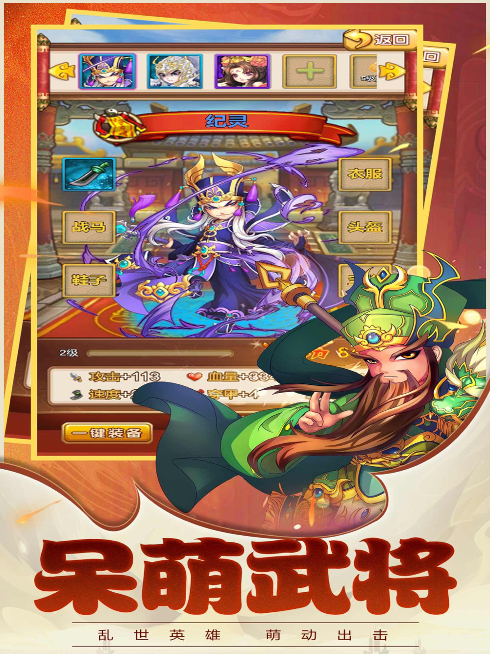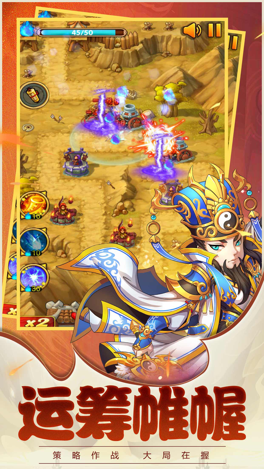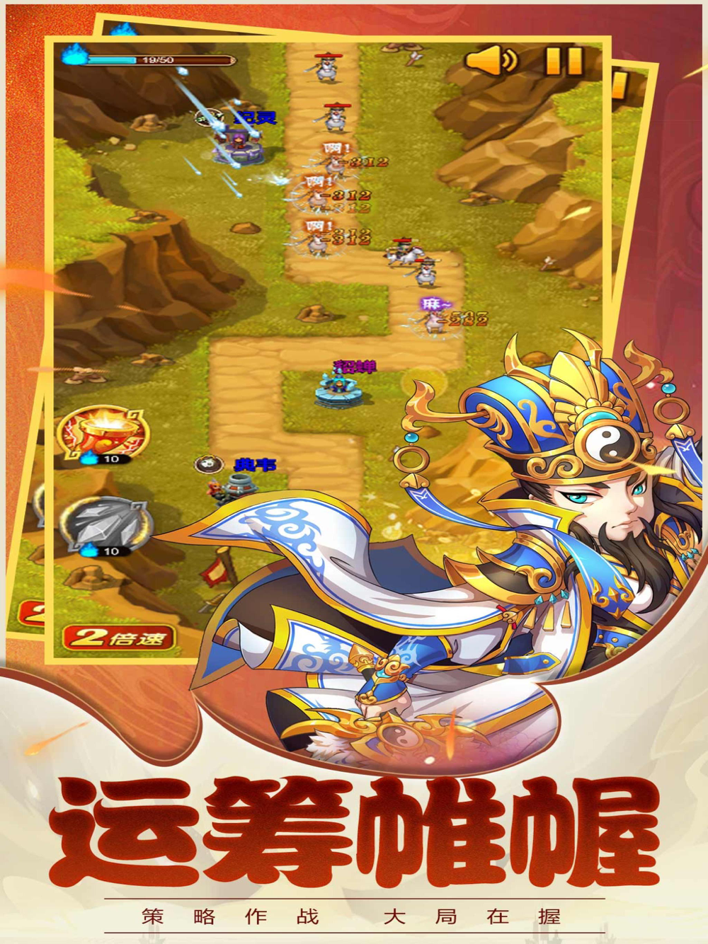 【萌系人物 二次元精制】 新增全新卡牌角色 ,近两百张卡牌,全新重绘武将角色与NPC对话,更Q更萌,对话诙谐,爆笑不停,更流行的游戏元素。 【地图丰富 百余卡牌】 缘起黄巾之战、讨伐董卓、群雄割据、官渡之战、赤壁之战等场景,招募诸葛亮、吕布、赵云、貂蝉等神将将神兵,用策略与智慧守塔,一统三国!超过三百张地图,近两百余名神将神兵,百变阵容、极致策略,老少皆宜。