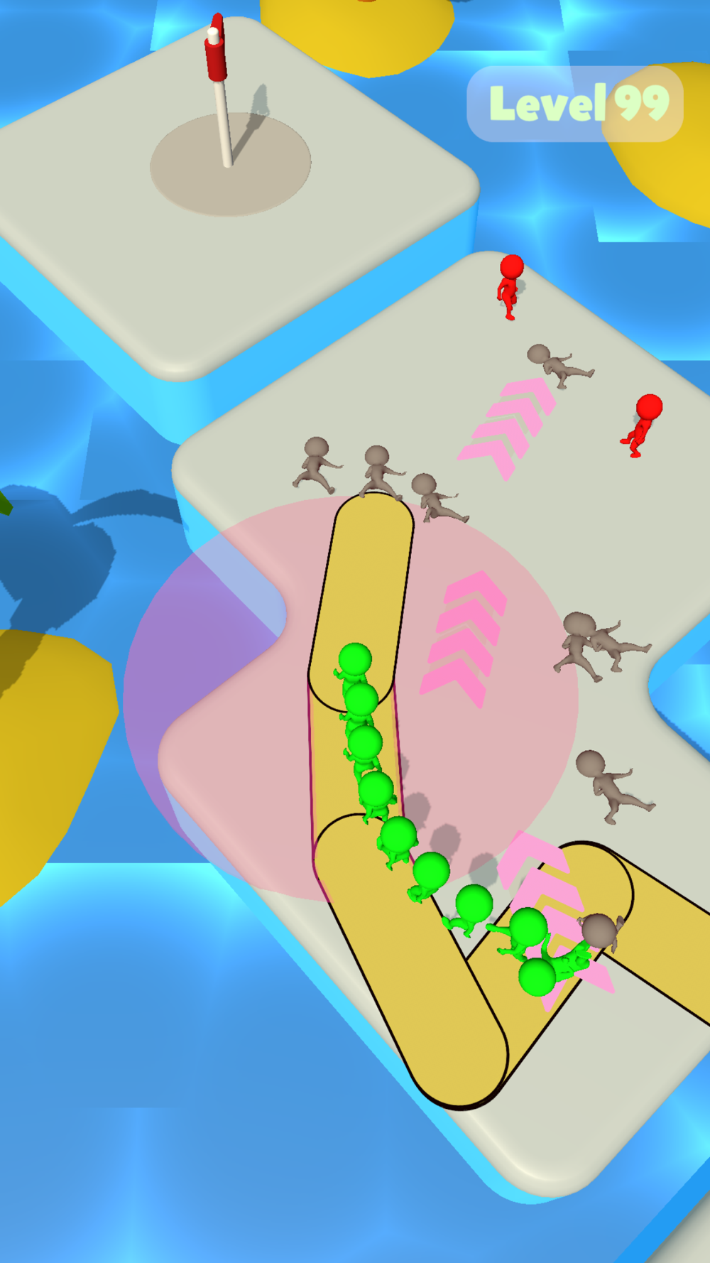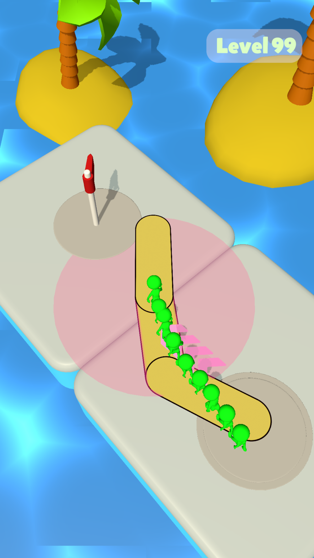 You are stuck on an island and you have to get out. But you have some nasty enemies! Do not worry though, you can build bridges to Knock Them Out! Use your spinning bridge building skills and get to the finish line!