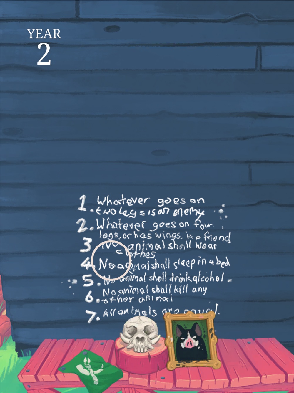 Orwell’s Animal Farm brings the familiar characters and situations to the medium of a game, and to the context of 2020. Depending on how you play, you may encounter situations very close to those in the book, or others influenced by events Orwell never lived to see.