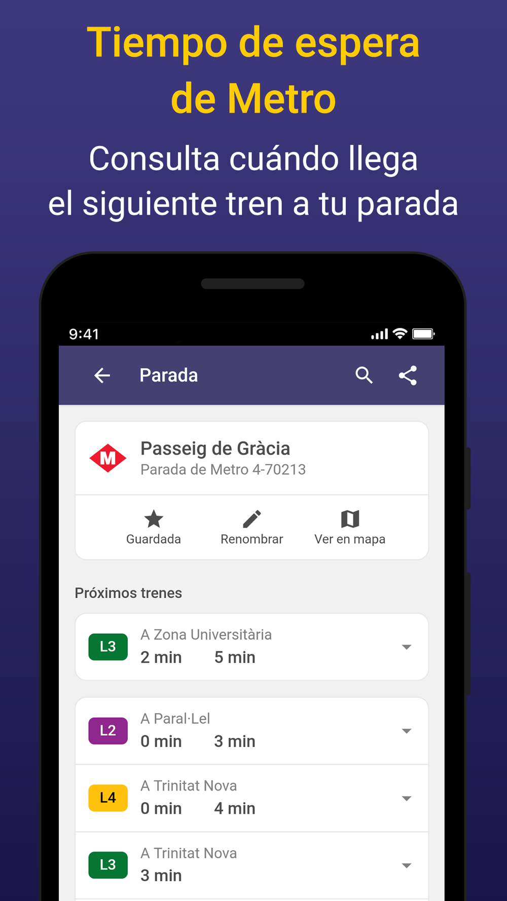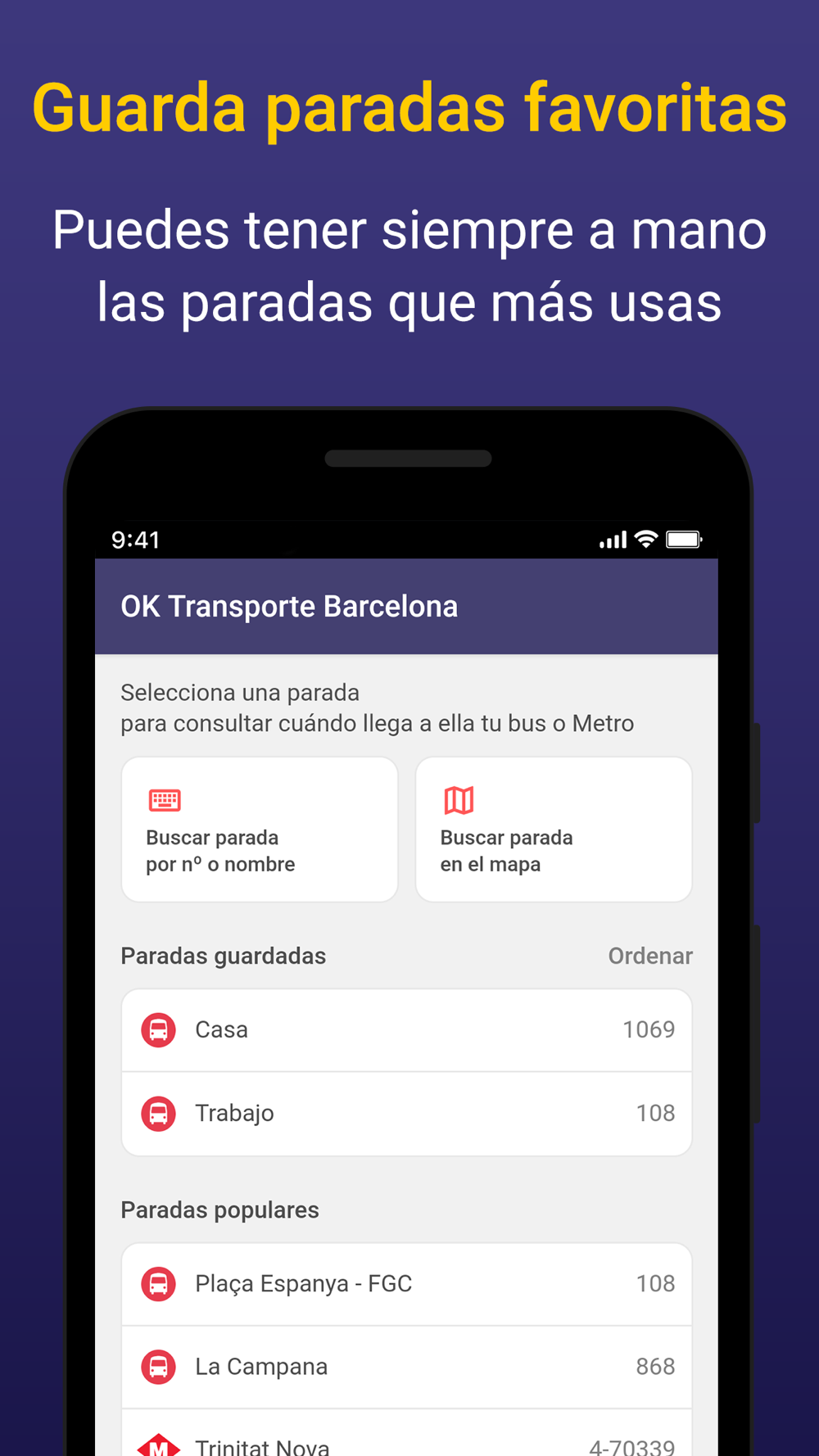 - Consulta cuándo tarda tu bus o Metro para llegar a cualquier parada de Barcelona y alrededores.