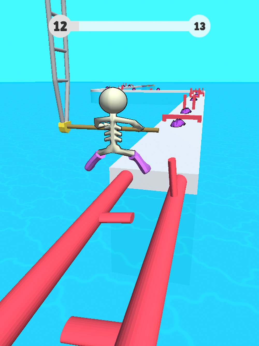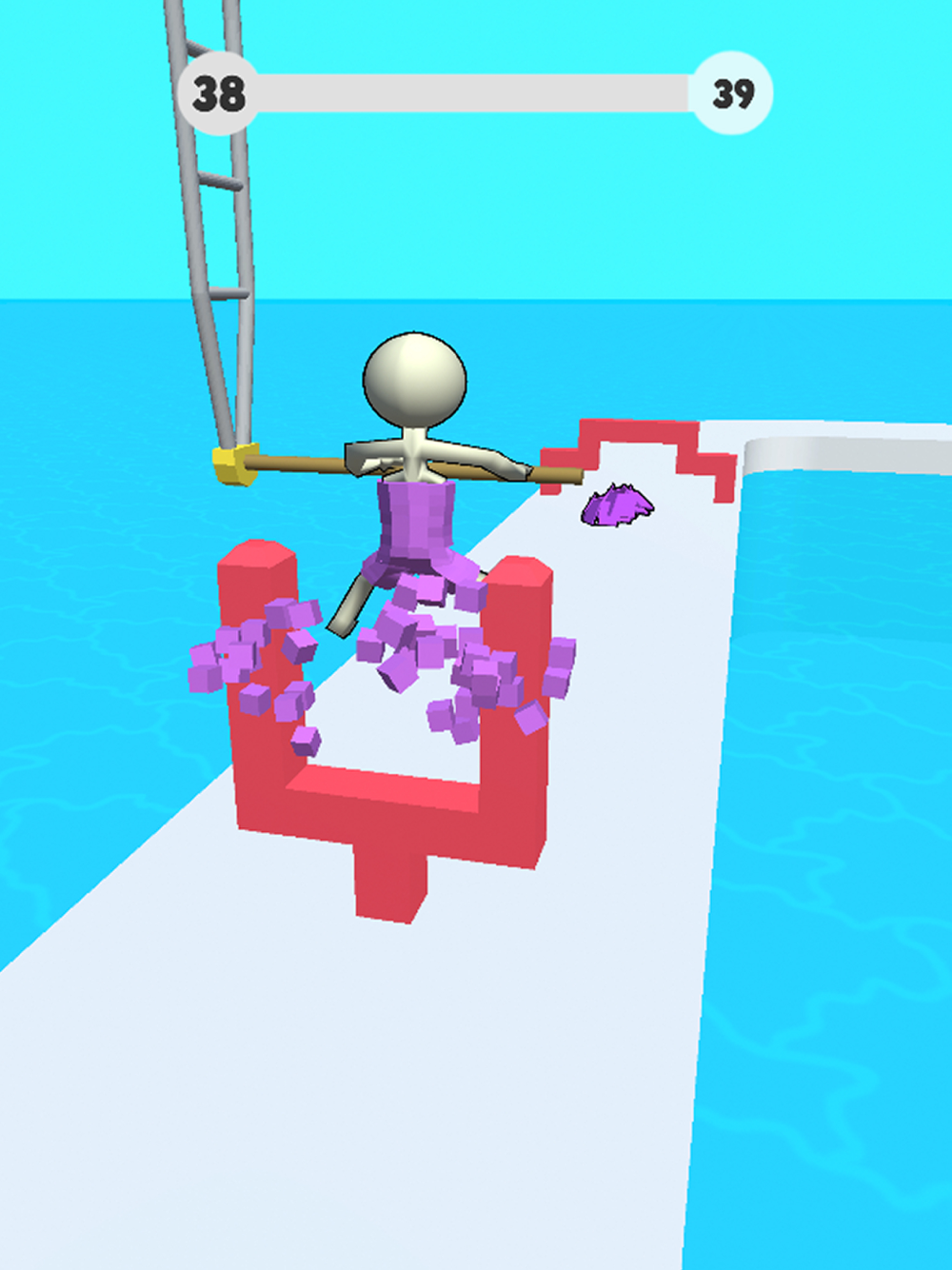 Collect the pieces on the ground to build the player. Don't forget the avoid the red obstacles!