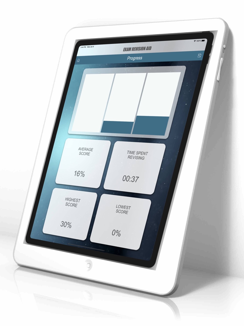 In the PROGRESS section, the app will show you how much time you spent preparing for the exam and the progress that you are making.