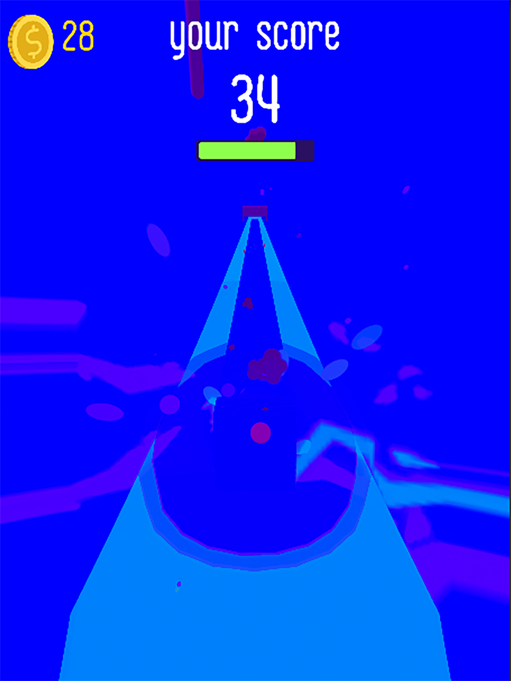 When fully powered, you will enter into invincible mode and able to destroy every obstacle and increase the speed even more!