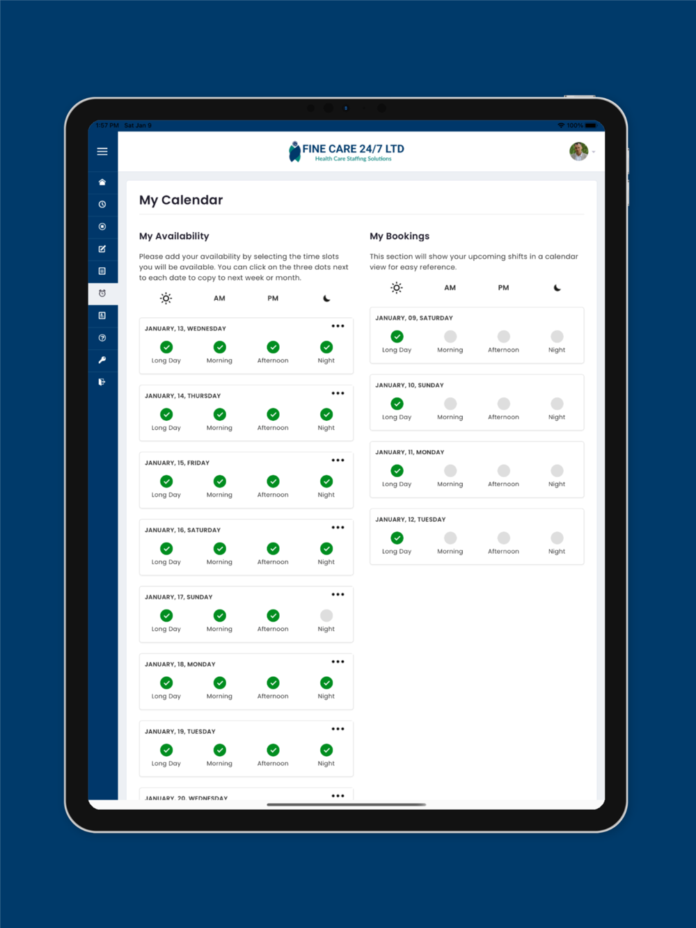 Fine care 24/7 app helps nurses, carers and other medical staff to create an account, upload their certificates and maintain current fit to practice status. Care homes and hospitals can post shifts through the app for fast and easy notification to the allocated staff to view available vacancies and accept shifts. The app also helps the staff and employers to see their respective work history, payment history, timesheets etc.