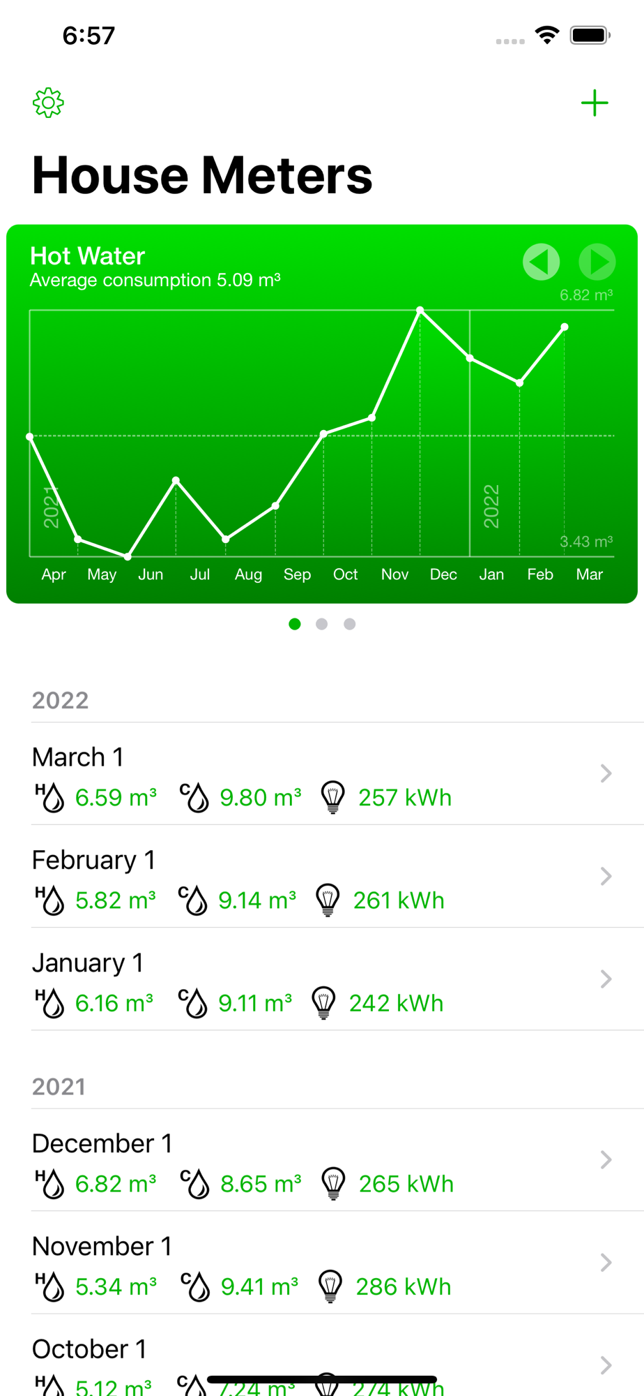 The app automatically calculates the average consumption of resources and makes it easy to track the increase in consumption above normal to plan subsequent expenses.