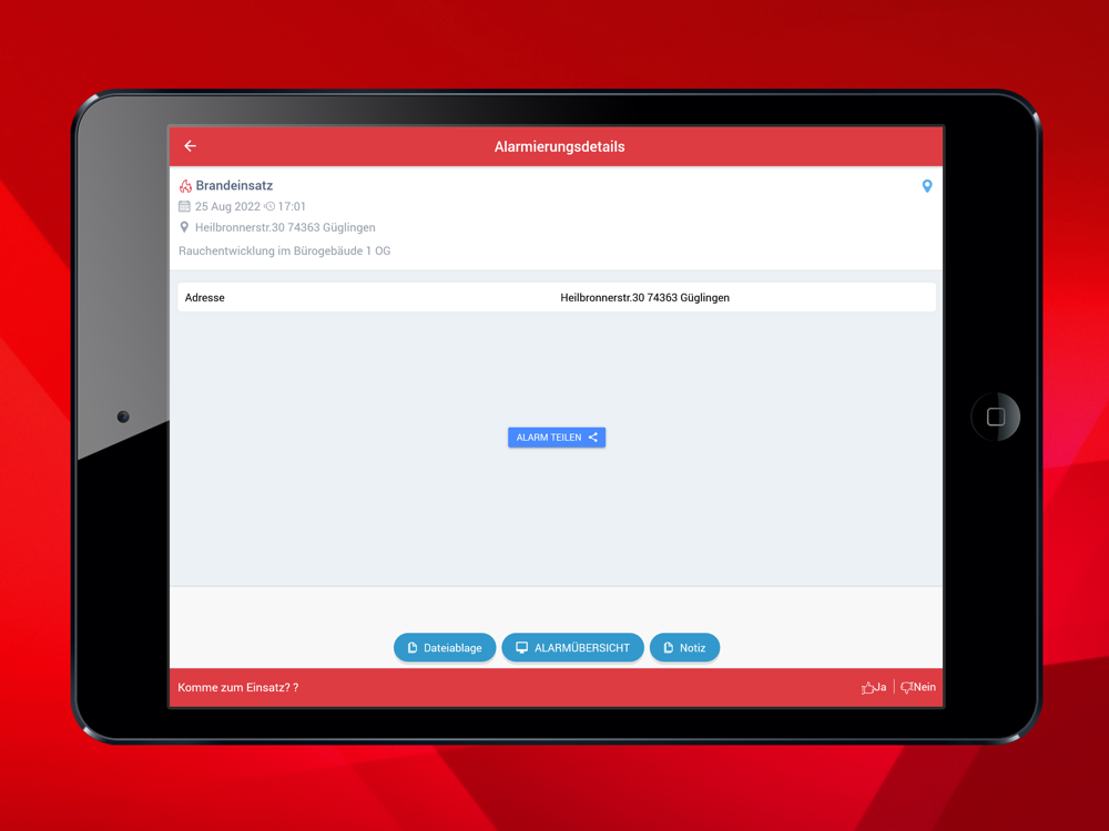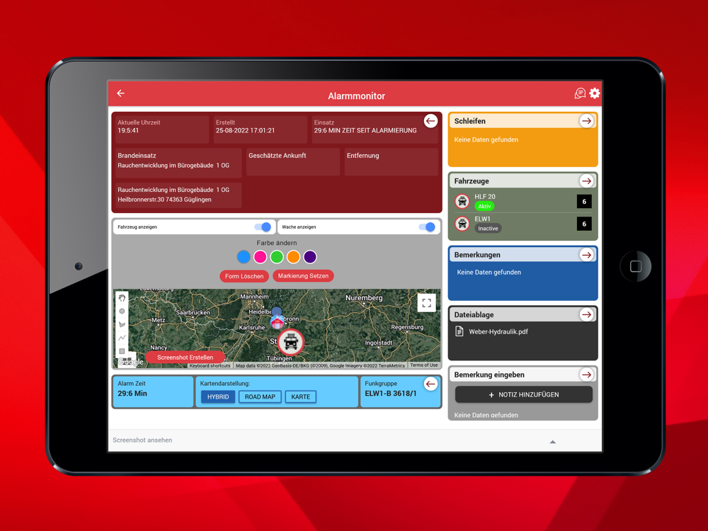 • Einsatzdokumentation, welche im Nachgang für den Einsatzbericht genutzt werden kann