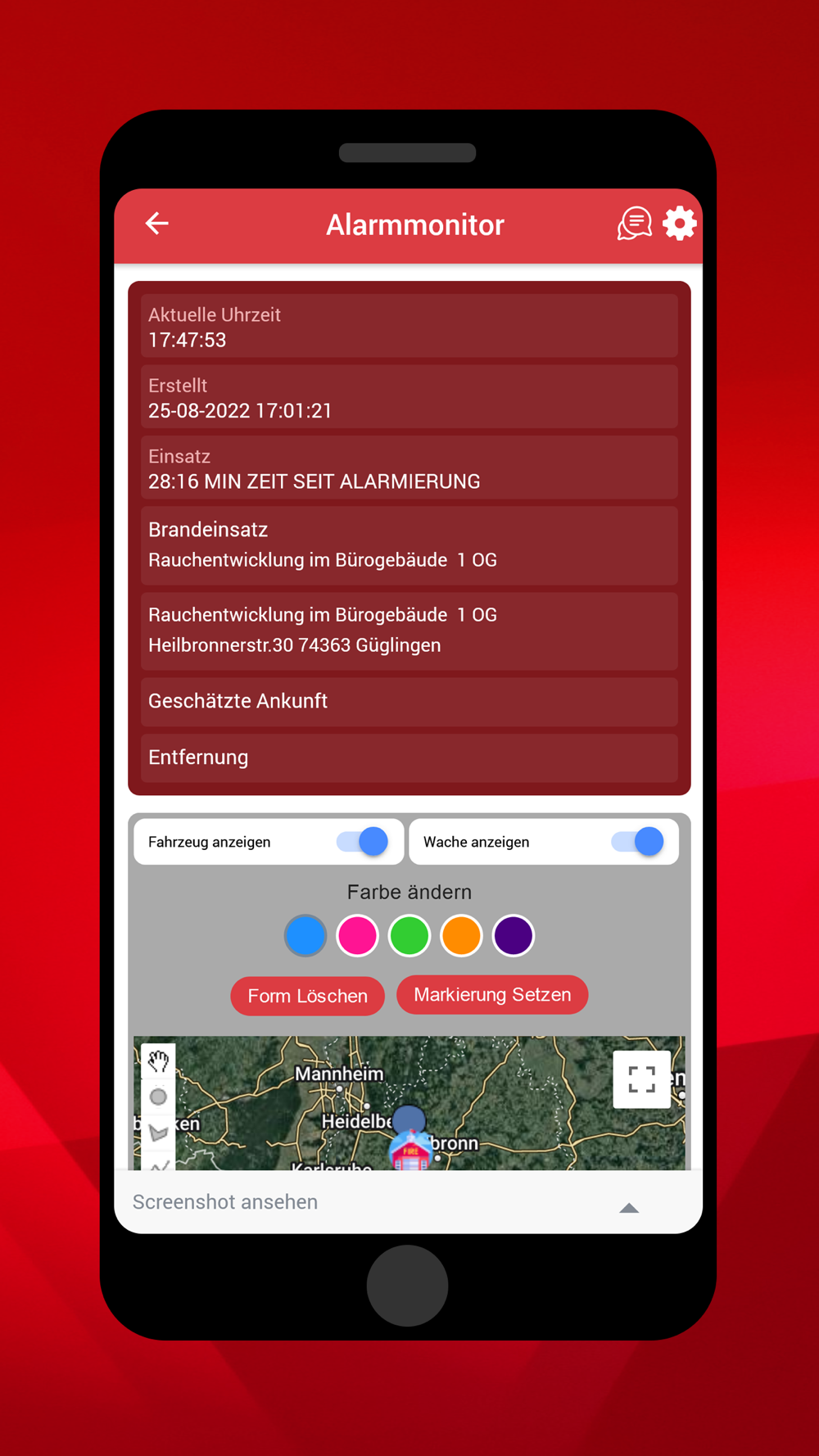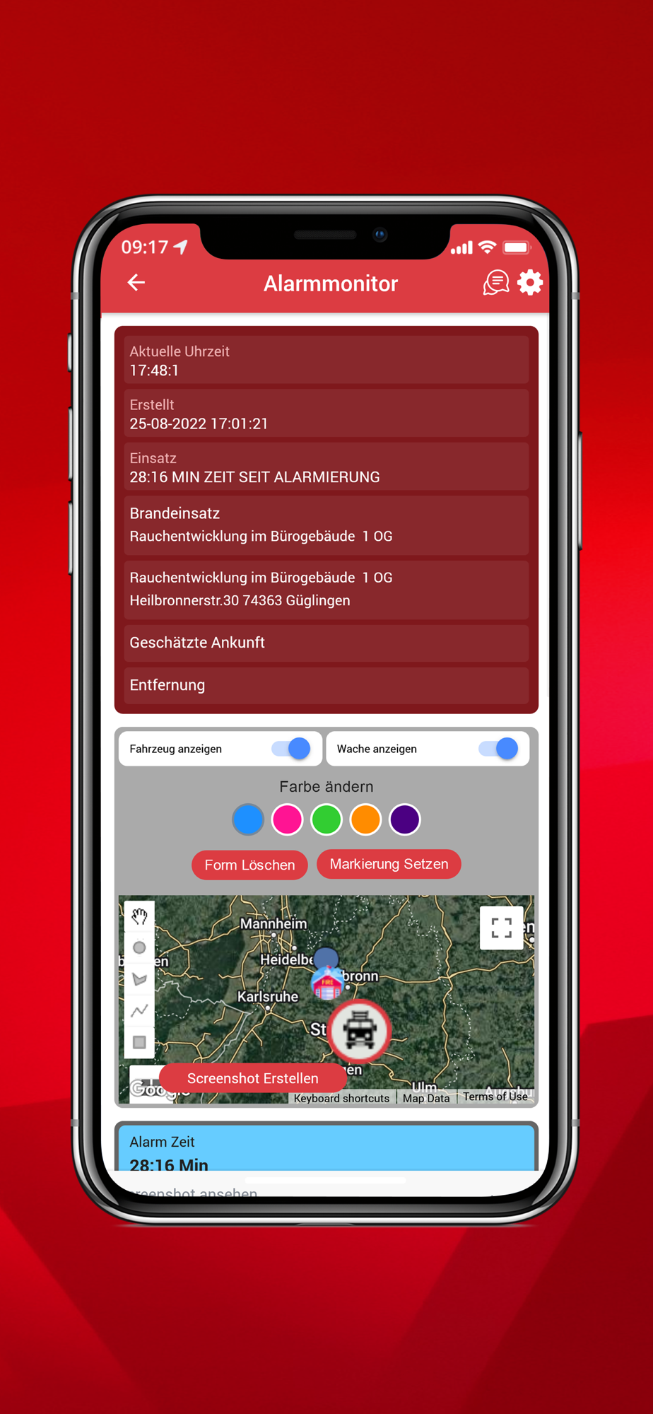 • Darstellung von Lagekarten sowie die Anzeige von Einsatzplänen
