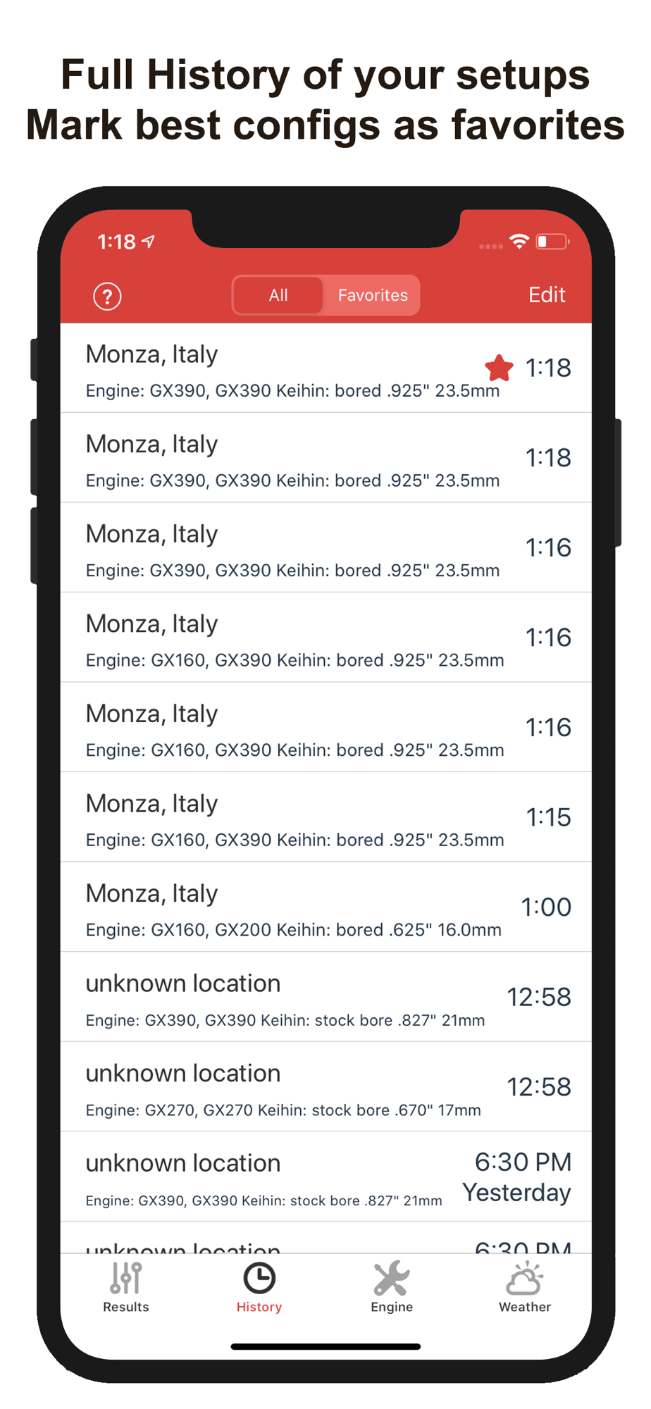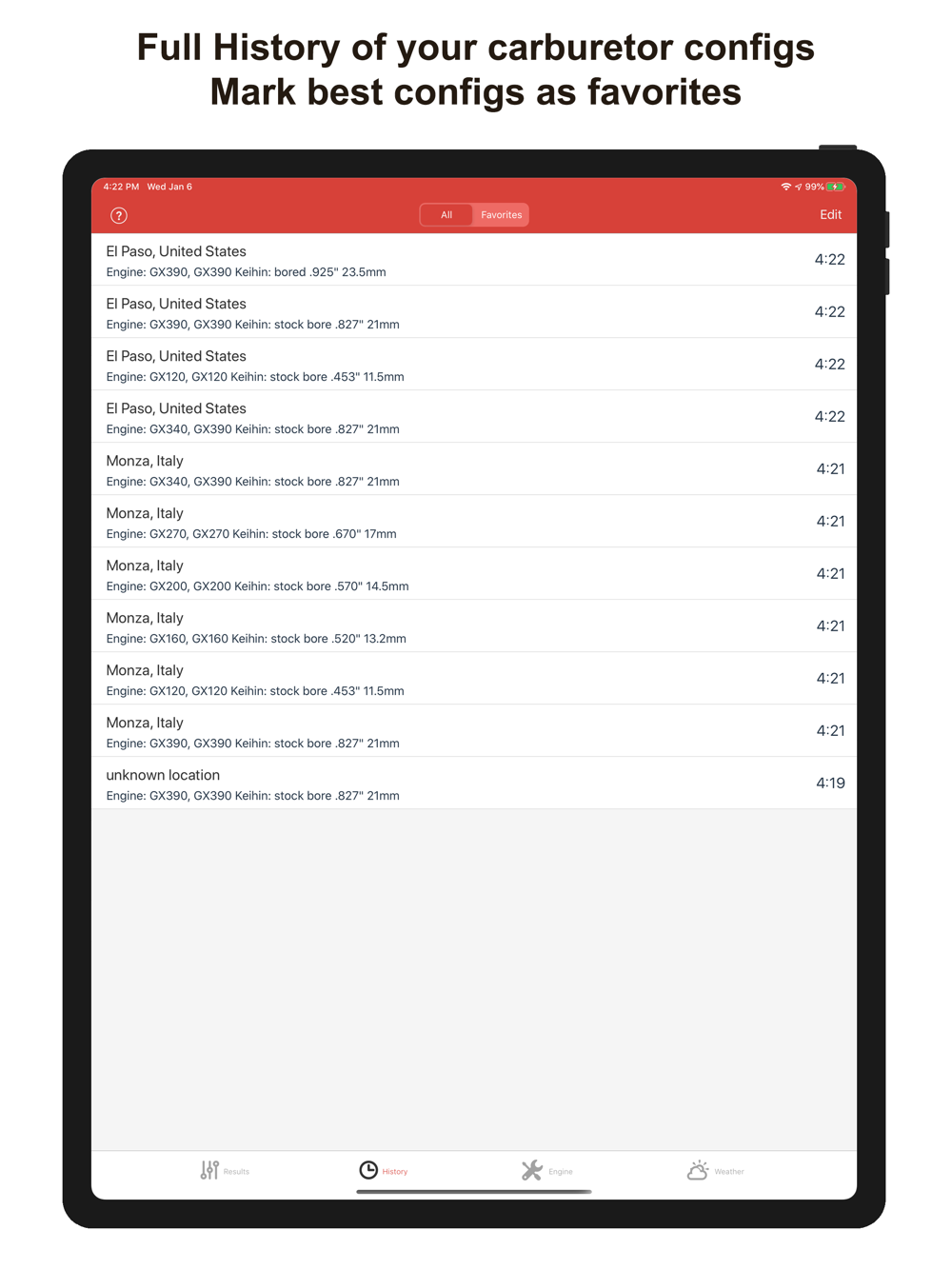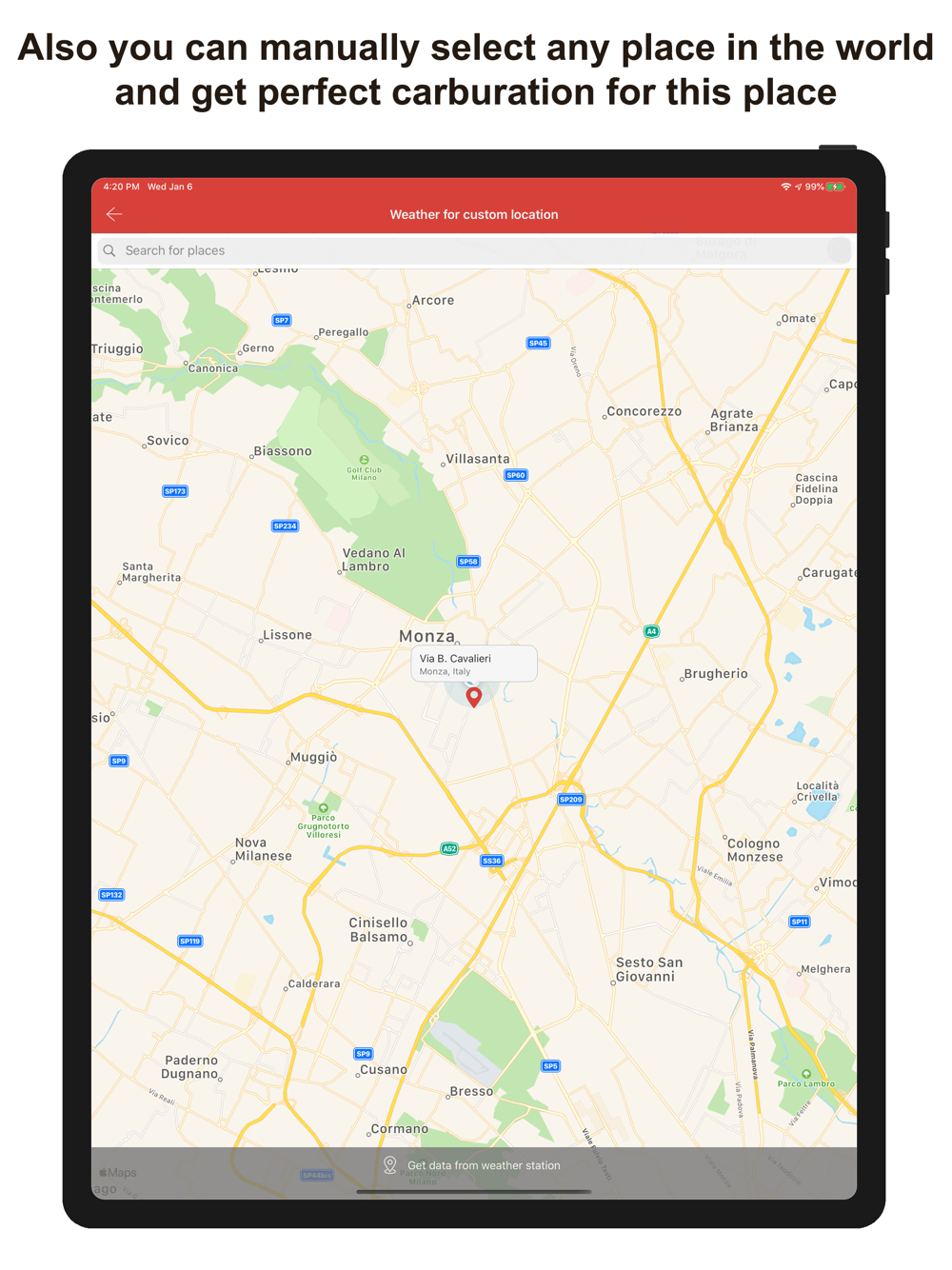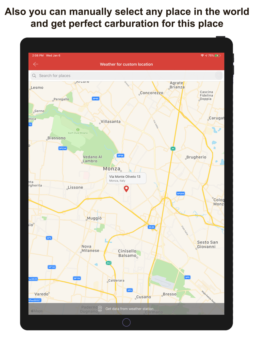 • If you don't want to share your location, you can manually select any place in the world, the carburettor configs will be adapted for this place