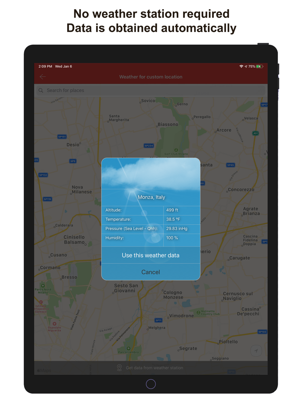 • Possibility of use automatic weather data or a portable weather station