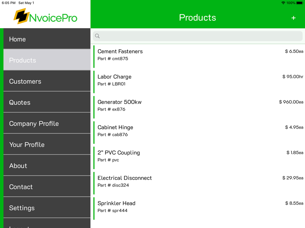 Add Products and Services to the products database to easily add items to your quotes and invoices