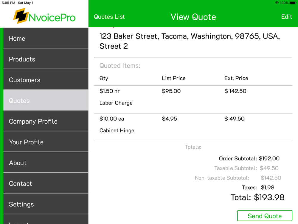 NvoicePro seamlessly creates professional estimates right in the palm of your hand. Any business owner needing a fast simple and professional invoicing and quoting system can use NvoicePro. Create and store estimates and eliminate the need for bulky hard to read (and hard to locate) handwritten paperwork. Additional features include an easy to use customer database so you can easily add and edit customer information and quickly send new quotes to existing customers. Save your product information and prices in the Products Database to quickly add common line items to invoices and quotes. Duplicate invoices for common customers and services for faster invoicing. Stay organized and know when a client has viewed your estimates with in-app notifications.