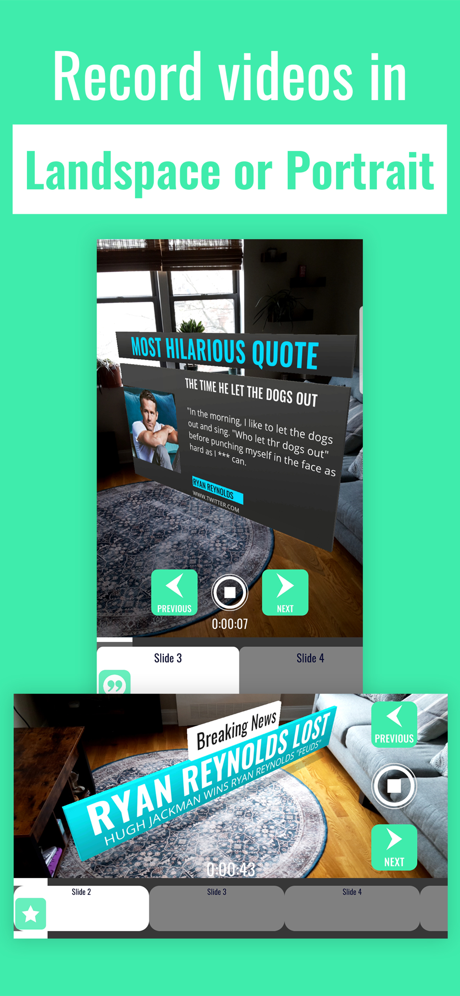 Add text to video and record videos with live captions and AR graphics for Youtube, Instagram, Twitter, TikTok, or other social media.