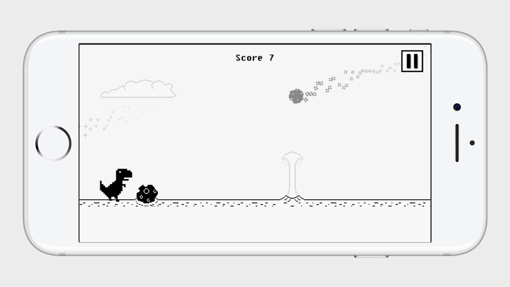 This amazing game have a sad story, where Dino is trying to survive and escape in the world that is endangered. The only one solution is to ran fast and forward. So, help little Dino to get as far as he can to survive from the disaster.