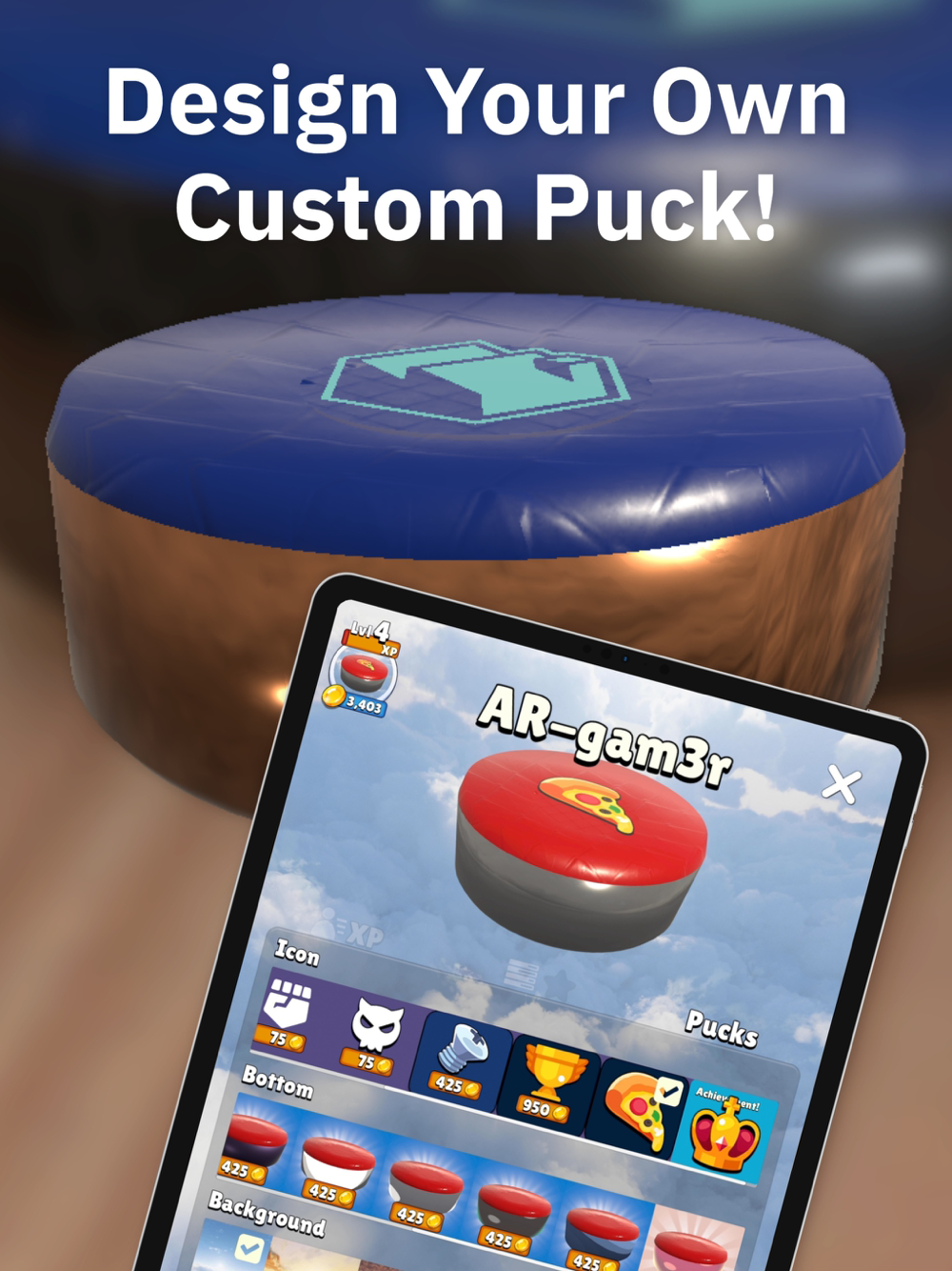 All the fun of traditional tabletop shuffleboard, available anywhere, including in augmented reality!