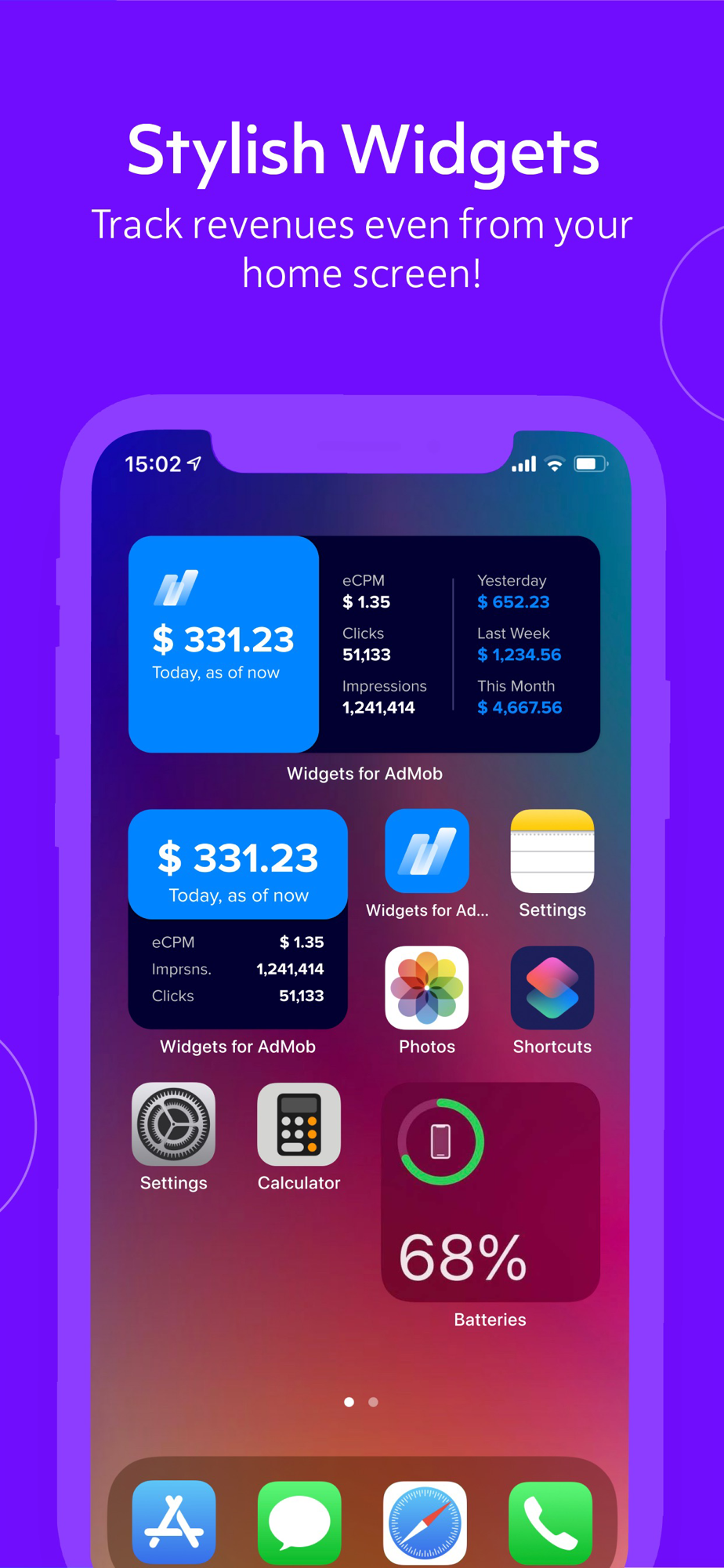 Track your app earnings on Google AdMob or AdSense with our beautiful widget on your home screen!