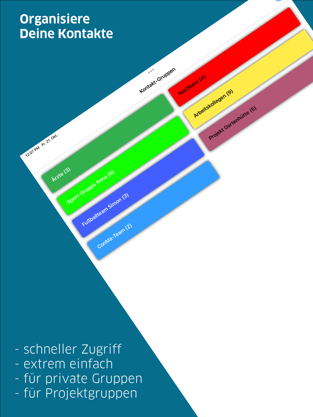 Das Organisieren deiner Kontakte war noch nie so einfach. Innerhalb weniger Minuten hast du deine Kontakte innerhalb von Gruppen so strukturiert, dass du diese immer schnell im Zugriff hast.