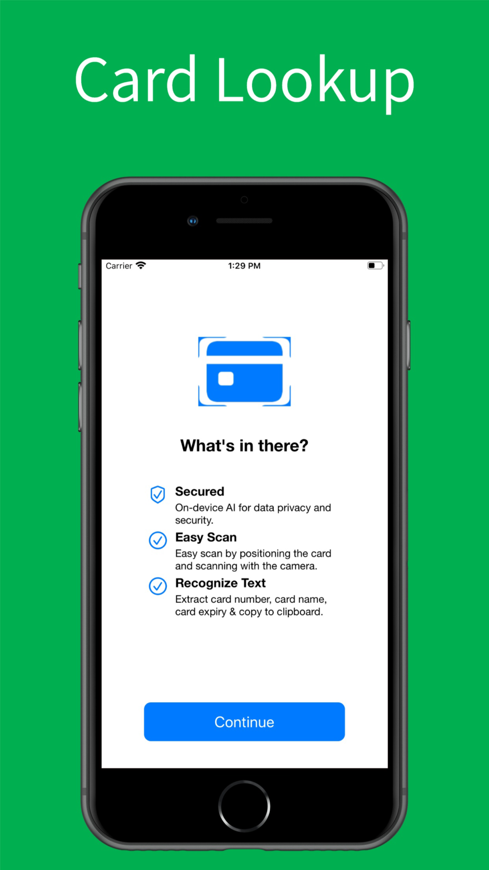 Card Lookup is a native iOS on-device AI based solution that extracts the 16 digit card number, card expiry and card holder's name from the given front side of a credit or debit card. The AI engine uses the cutting edge computer vision framework from Apple along with custom trained CoreML model for precise landmark detection. The system also makes use of the Natural Language framework from Apple for identifying person names . The on-device AI engine ensures data privacy and security.