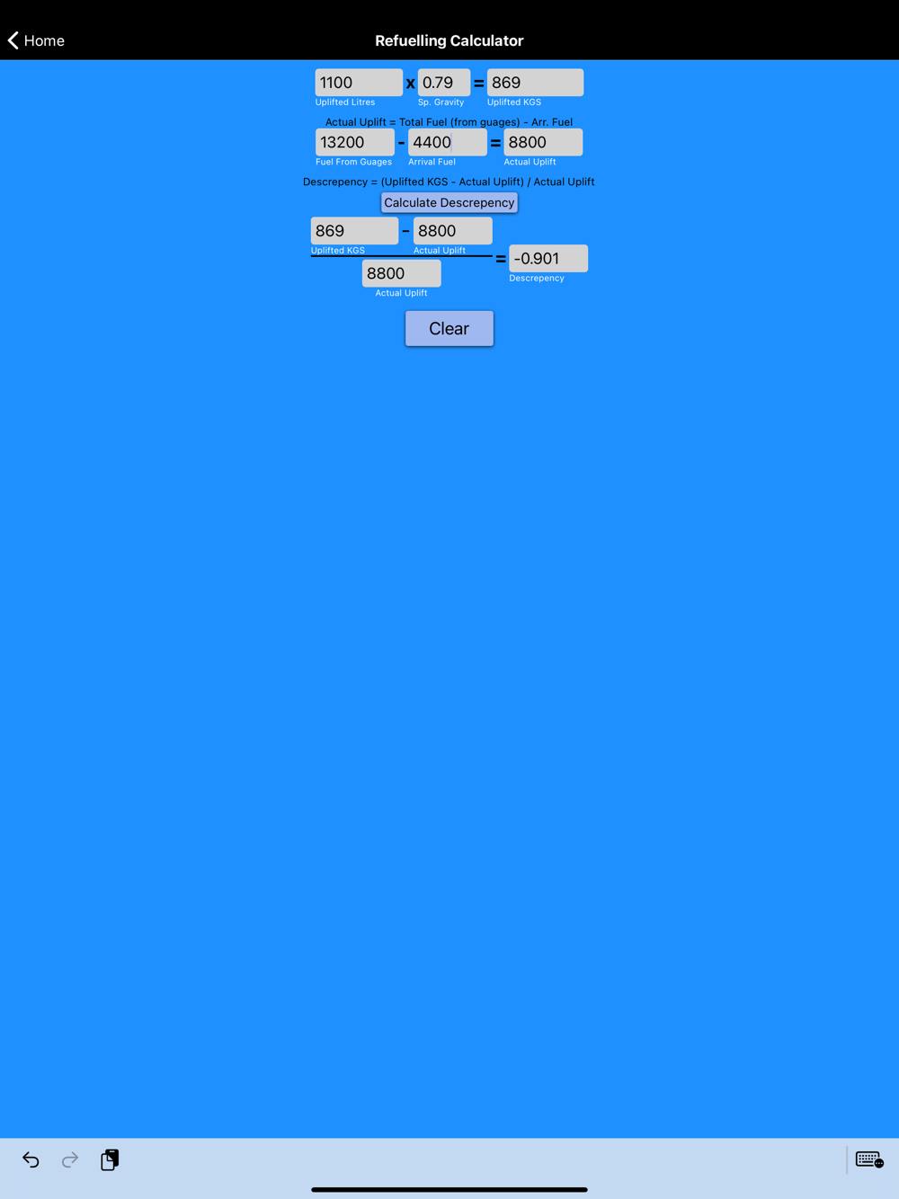 This app is designed for aircraft refuelling calculations and to calculate oil consumption rate of aircraft engines over time. It can be used by professionals in aviation industry.