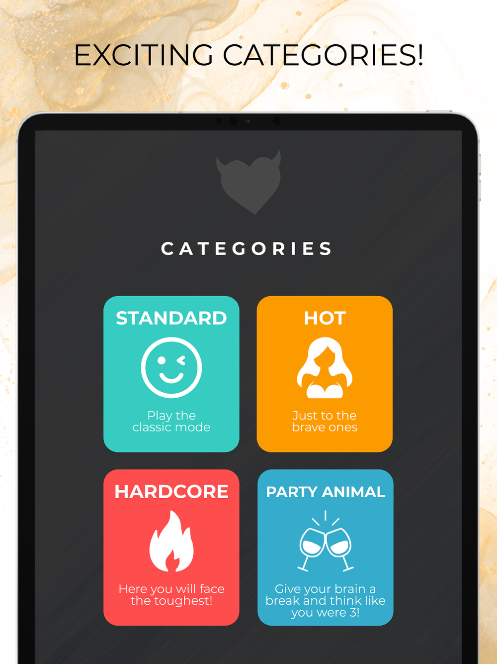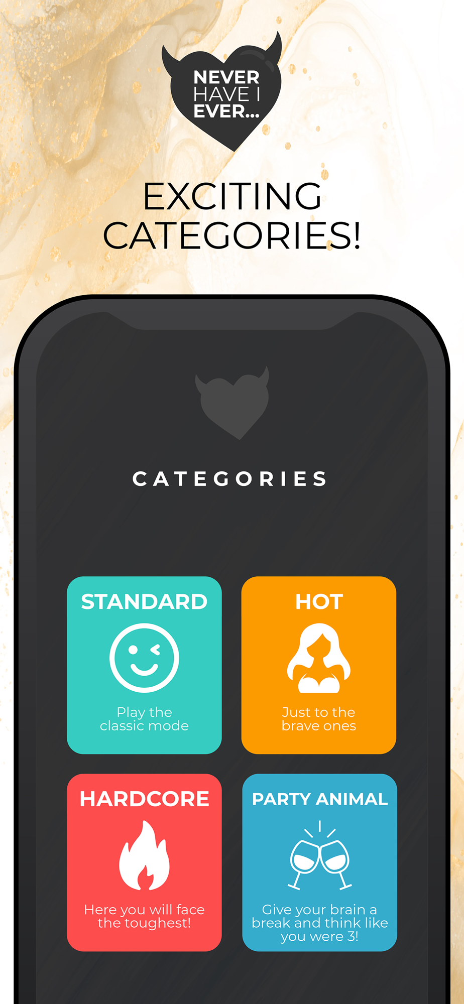 This is the classic never have I ever game, a perfect app to play together with your friends, girlfriend, boyfriend or.. unlimited possibilities, even the most dirty one ;)