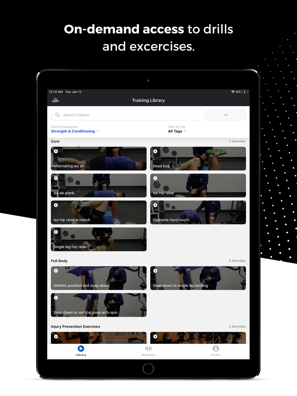 Players can watch experts do drills, repeat them at home, then upload their videos and receive feedback. Compete with your teammates and other teams on the leaderboard.